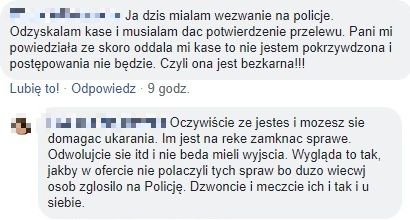 Ostatecznie, po blisko dwóch miesiącach codziennych SMS-ów wysyłanych do nieuczciwej sprzedawczyni, negatywnych komentarzy w Internecie itp. klientka otrzymała z powrotem pieniądze. Wcześniej zdążyła zgłosić sprawę zarówno na policję w Krakowie i Złotoryi, a także do Urzędu Skarbowego w Złotoryi.