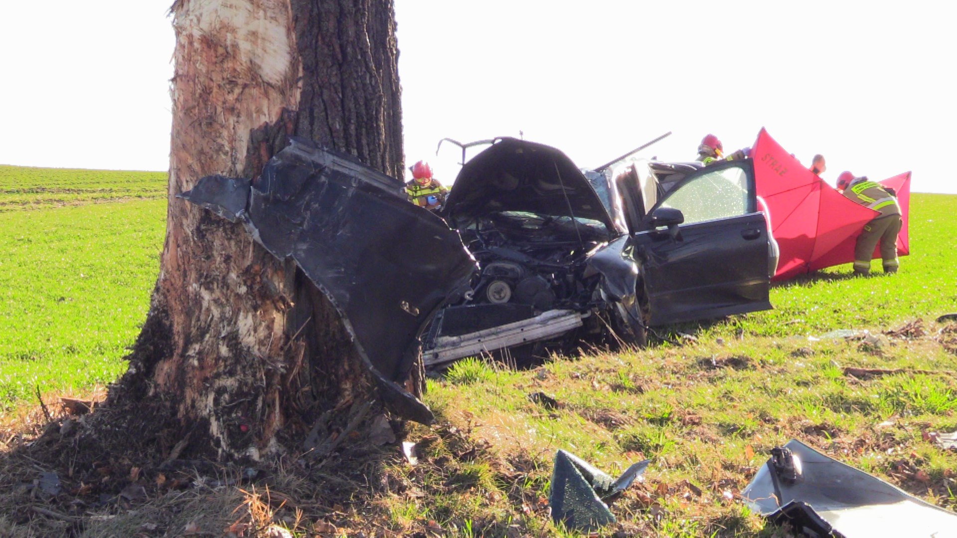 Do wypadku doszło w sobotę rano na trasie Złotoryja-Jawor. Czterech mężczyzn jechało audi. Ze wstępnych ustaleń wynika, że kierowca jechał z ogromną prędkością, na łuku drogi stracił panowanie nad pojazdem i uderzył w drzewo. Trzech mężczyzn zmarło na miejscu. Jeden został przetransportowany do szpitala we Wrocławiu. Jego stan jest bardzo ciężki.