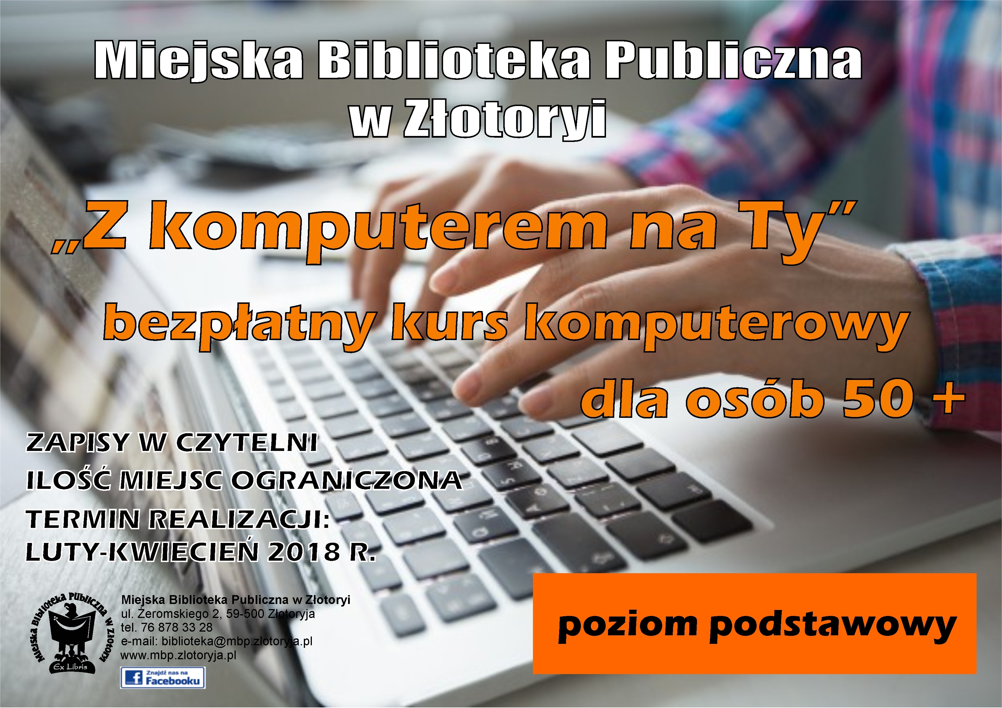 „Z komputerem na ty” to bezpłatny kurs z zakresu podstaw komputerowych skierowany dla osób powyżej pięćdziesiątego roku życia. Zajęcia prowadzone będą od lutego do kwietnia. Zapisywać się można w czytelni MBP w Złotoryi. Należy się spieszyć, ponieważ ilość miejsc jest ograniczona.