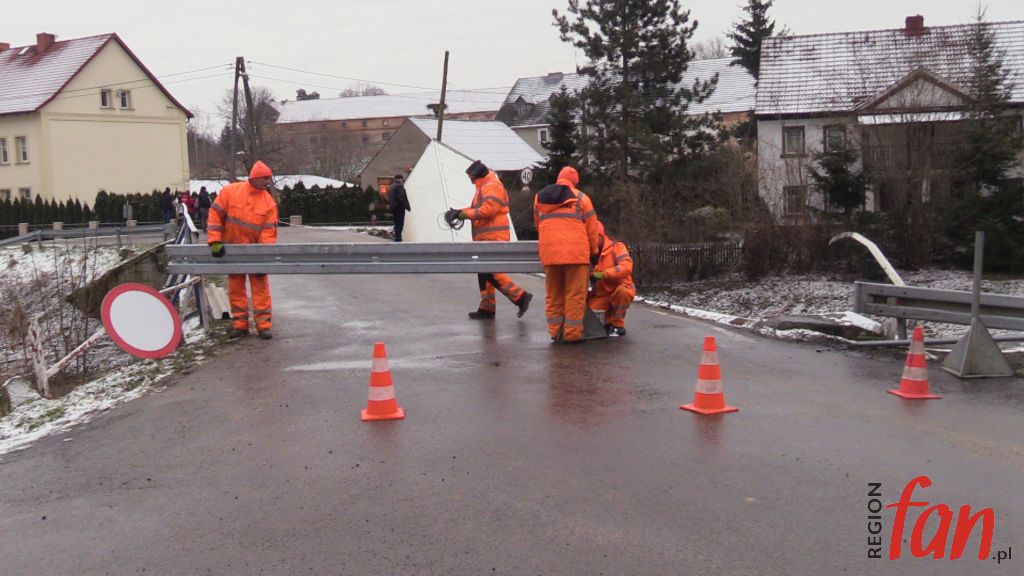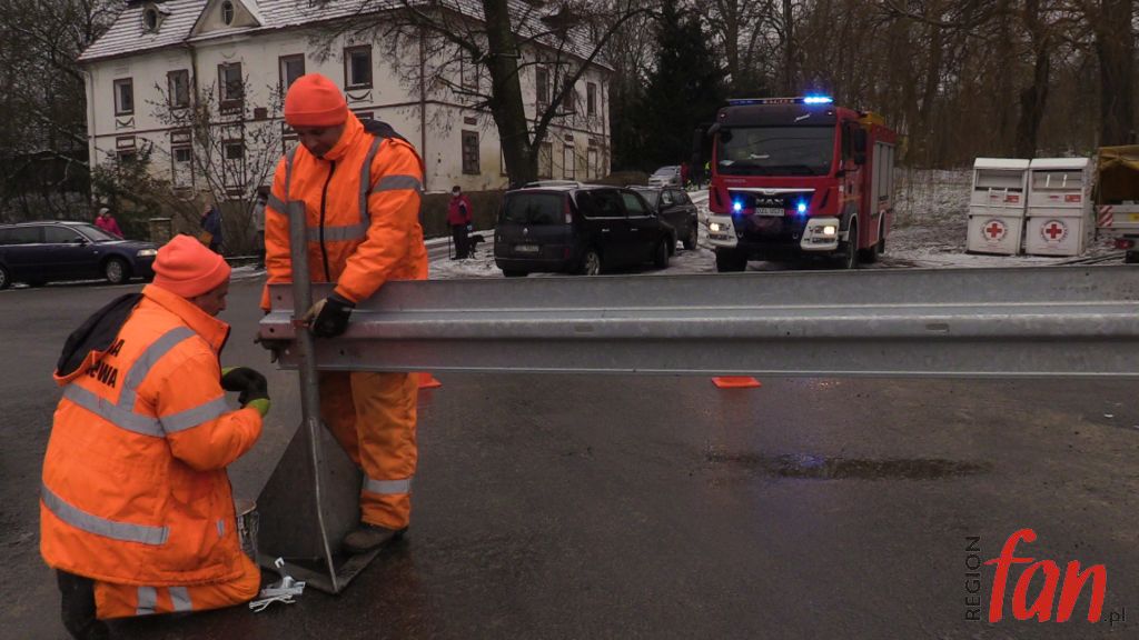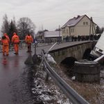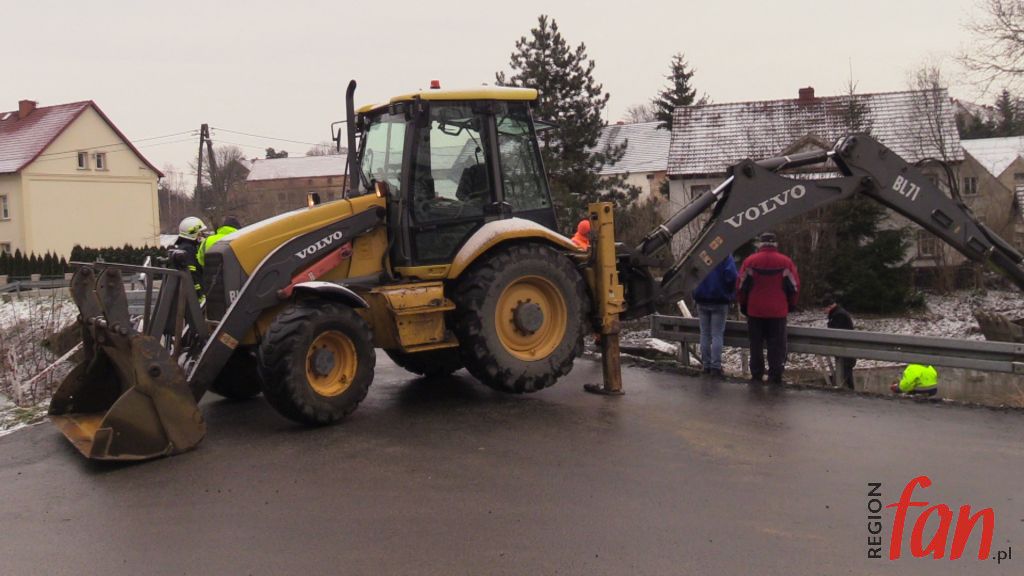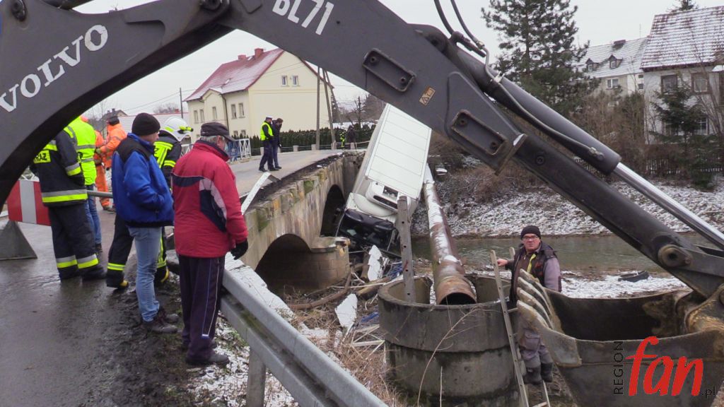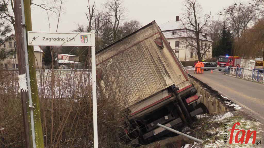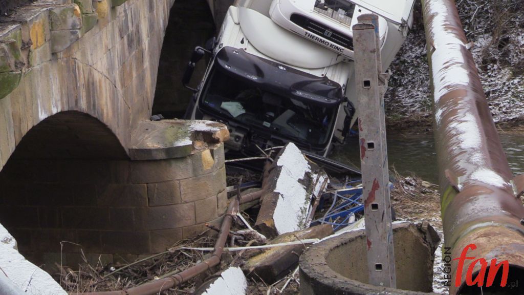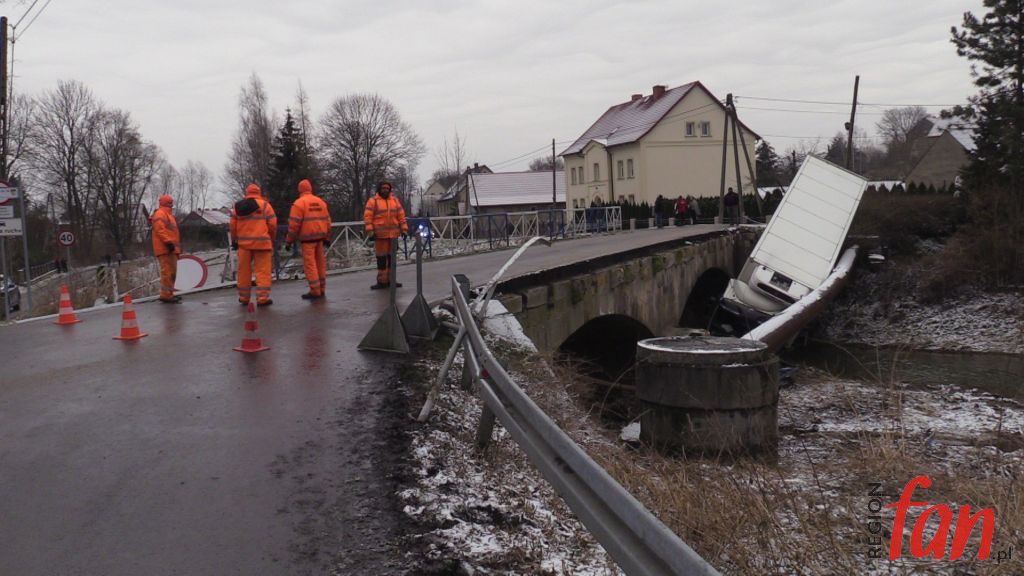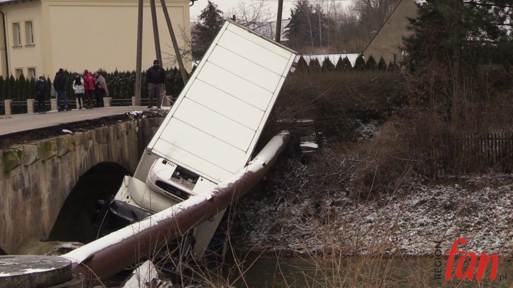 – Zbliżając się do mostu próbowałem hamować. Robiłem co mogłem, używałem hamulca ręcznego, w ciężarówce mam ABS, nic nie reagowało, auto leciało do przodu. Myślałem, że już po mnie. Ta rura chyba uratowała mi życie – powiedział nam na miejscu pan Bogusław z Legnicy, kierowca z wieloletnim stażem. Poszkodowany samodzielnie wydostał się z pojazdu. Ratownicy z OSP Zagrodno i JRG Złotoryja zabezpieczyli pojazd i miejsce zdarzenia. Konieczne było zamknięcie mostu dla ruchu pojazdów. W wyniku kolizji uszkodzony został rurociąg z wodą. Obecnie trwa usuwanie awarii. Wody pozbawieni są mieszkańcy Uniejowic i część mieszkańców Zagrodna. Ciężarówkę z rowu ma usunąć specjalistyczny dźwig, który sprowadzany jest z Jeleniej Góry. Policja zorganizowała objazd w kierunku Pielgrzymki drogą lokalną przez Zagrodno.