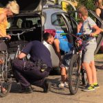 – Spisaliśmy ponad trzydzieści rowerów. W przypadku kradzieży będzie nam łatwiej ustalić właściciela – mówi starszy sierżant Dariusz Antoniewicz z Komendy Powiatowej Policji w Jaworze. Funkcjonariusz przywiózł ze sobą także prezenty: kolorowe odblaski i słodycze.