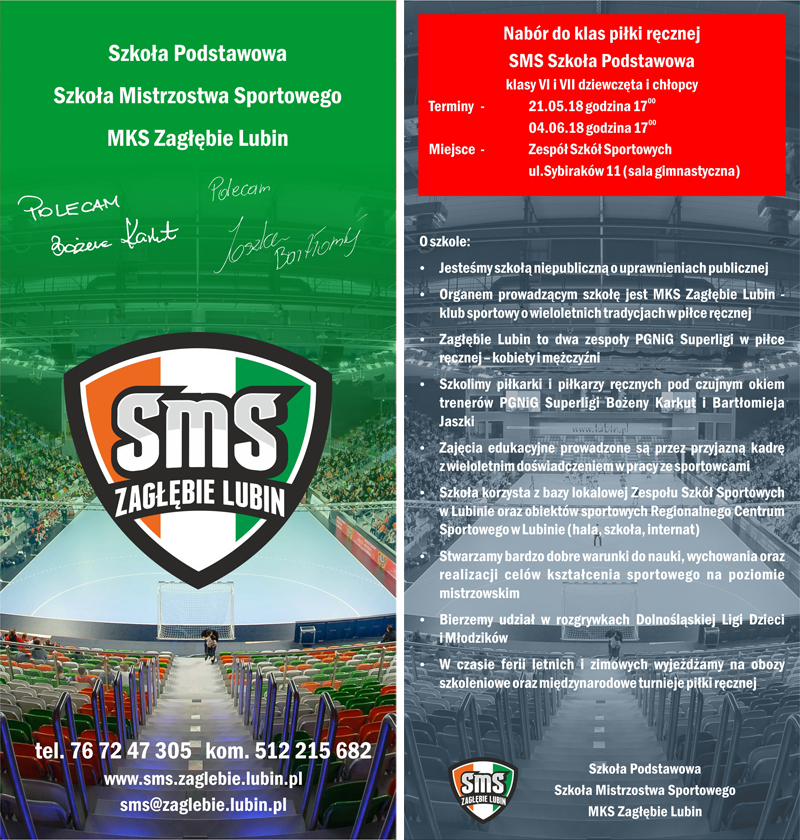 SMS Zagłębie Lubin szkoli piłkarki i piłkarzy ręcznych pod czujnym okiem trenerów PGNiG Superligi Bożeny Karkut i Bartłomieja Jaszki. Zajęcia edukacyjne prowadzone są przez przyjazną kadrę z wieloletnim doświadczeniem w pracy ze sportowcami.