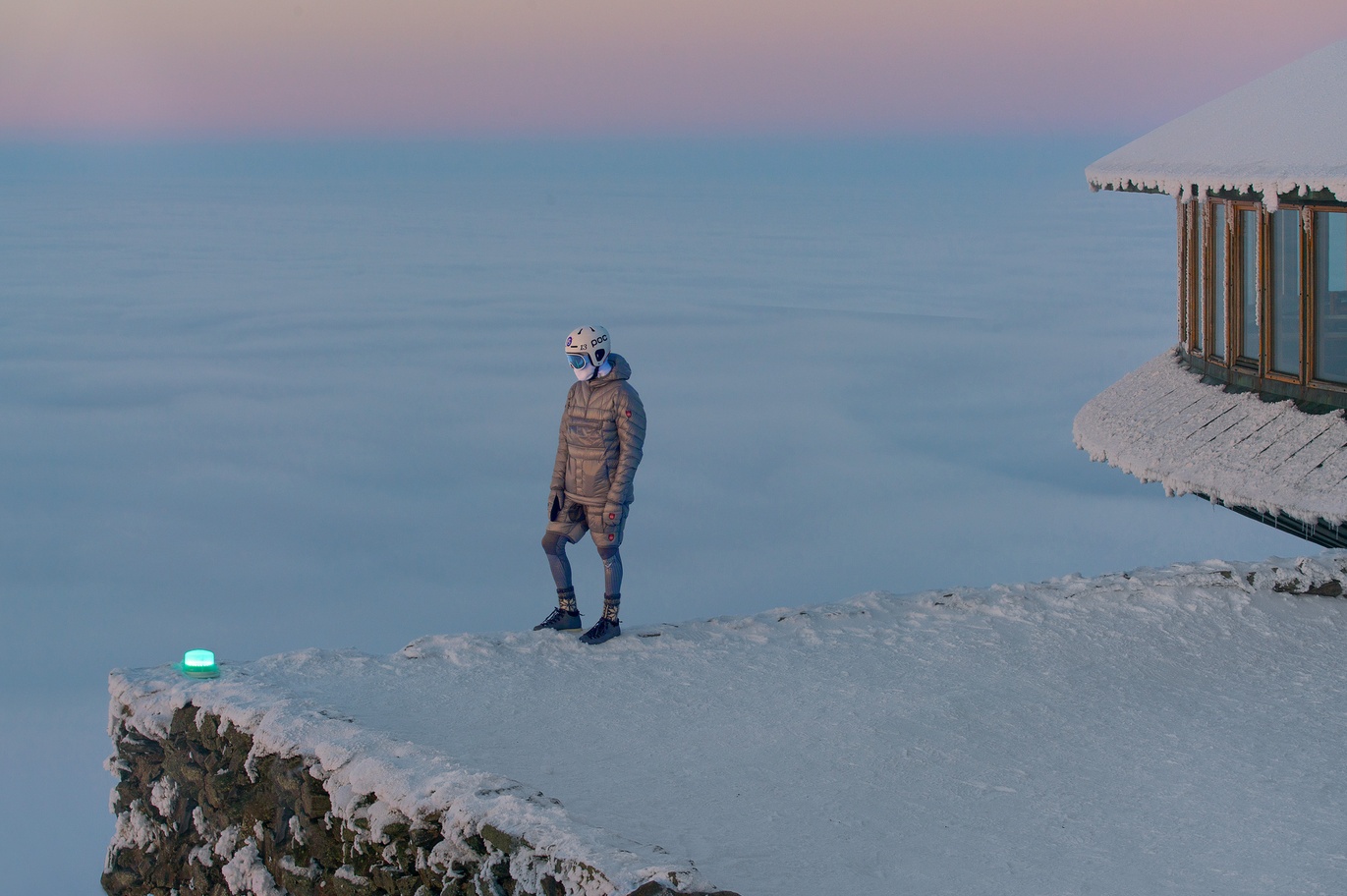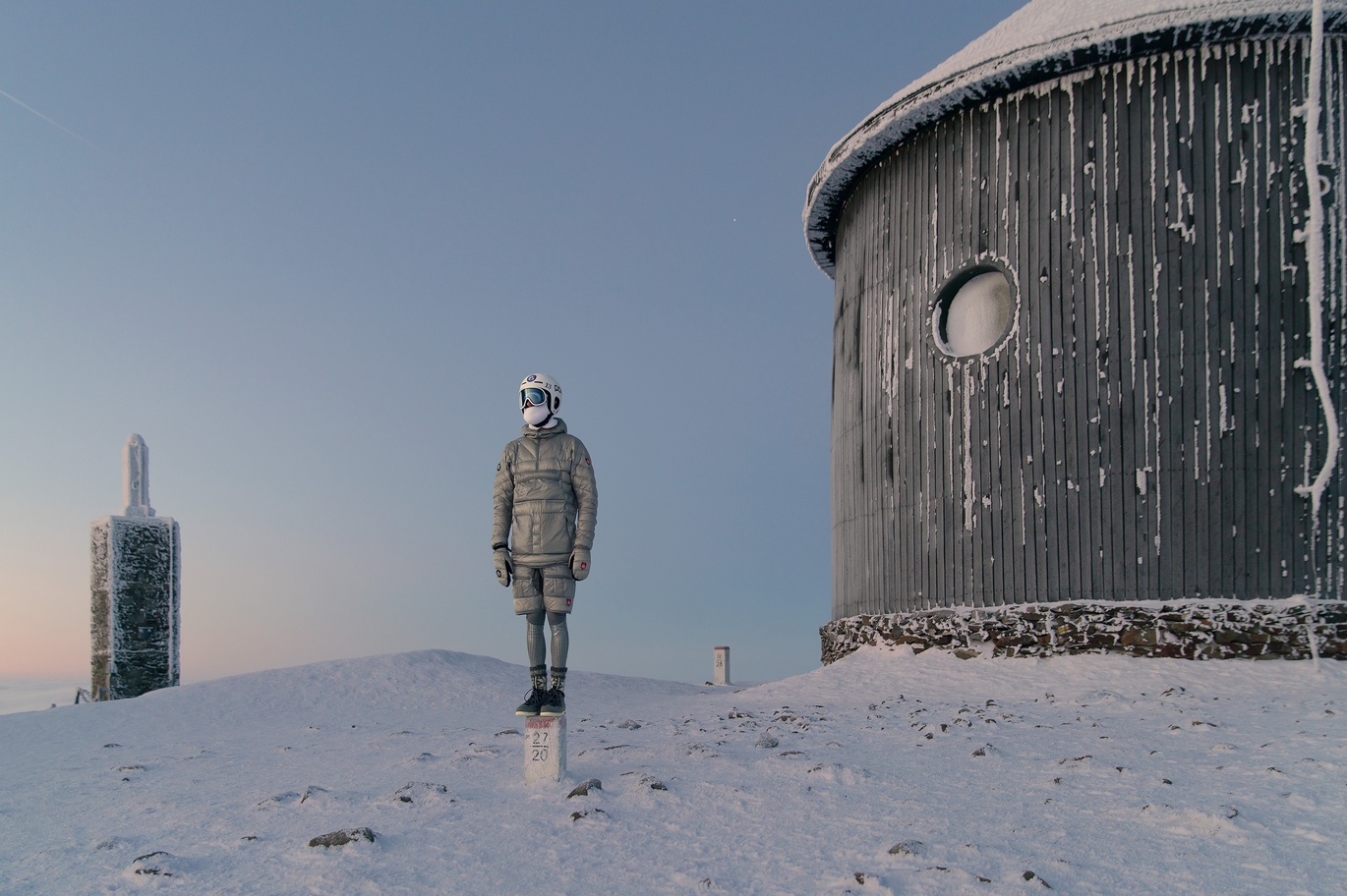 Obraz, na którym futurystycznie ubrana postać stojąca na otoczonym chmurami szczycie, do złudzenia przypomina kadr z filmowego planu. Dopiero ujęcia, na których widać charakterystyczne dyski obserwatorium meteorologicznego, pozwalają rozpoznać to miejsce. Pozujący do zdjęć model to Aleksander Lange, który wraz z bratem Gustawem prowadzi studio Lange&Lange. Obaj stworzyli kolekcję odzieży górskiej, na kanwie której powstał kosmiczny kostium. 9 lutego projektanci w towarzystwie zaprzyjaźnionego fotografa wspięli się na szczyt Śnieżki.