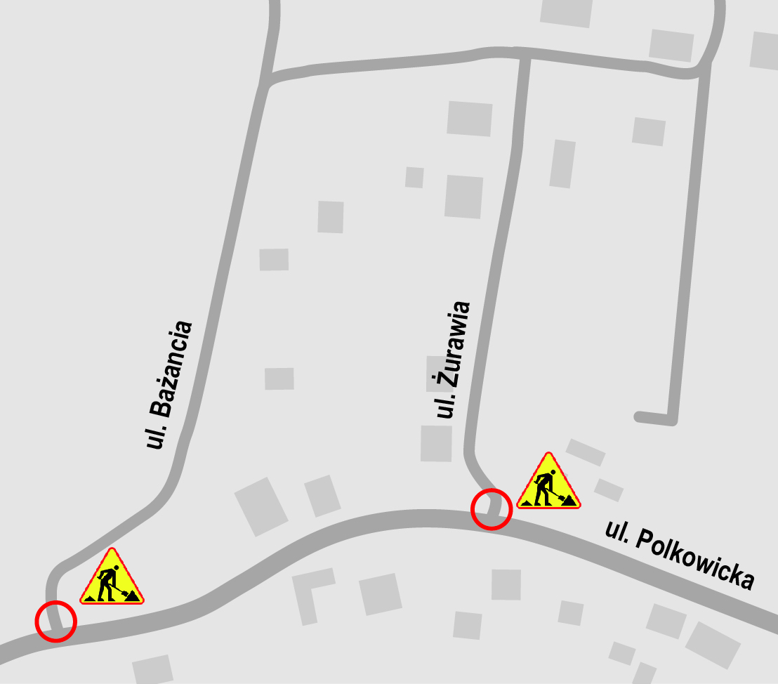 Po zakończeniu prac przy ul. Żurawiej, drogowcy przeniosą się na ul. Bażancią, gdzie przebudują istniejący przepust. Jest to droga wewnętrzna prowadząca na osiedle domków jednorodzinnych. Od dłuższego czasu można tam zaobserwować wzmożony ruch samochodowy, szczególnie pojazdów ciężkich przewożących materiały budowlane. Stan techniczny przepustu jest zły. W czasie remontu do ul. Bażanciej można będzie dojechać ulicami Polkowicką i Żurawią.