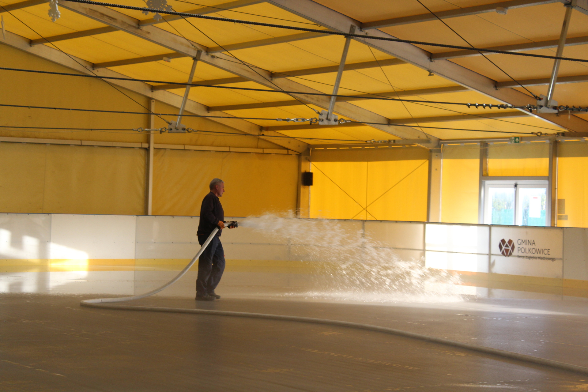 Przygotowania do otwarcia lodowiska trwają już od kilku tygodni. Kluczowym etapem było osiągnięcie odpowiedniej grubości lodu, tj. od 15 do 17 cm (na zdj.). Obecnie, jak dodaje Jarosław Łojko, kierownik Działu Zarządzania Obiektami Sportowymi w Polkowickim Przedsiębiorstwie Komunalnym, dwa razy dziennie tafla jest równana przez maszynę służącą do jej pielęgnacji.