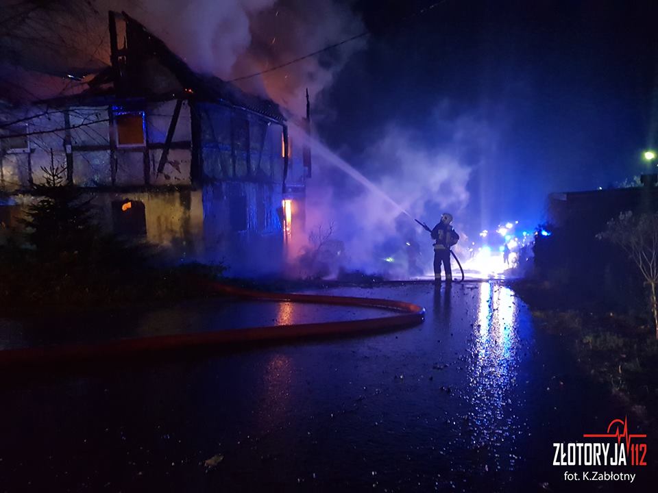 Działania ratownicze zakończyły się dopiero dziś około godz. 8. W wielogodzinnej akcji brali udział strażacy z PSP w Złotoryi i Jaworze, a także ochotnicy z Prusic, Wysocka, Pielgrzymki i Jednostki Poszukiwawczo-Ratowniczej w Złotoryi. – Podczas dogaszania pożaru z drabiny mechanicznej ratownicy przeprowadzili jednocześnie niezbędne prace rozbiórkowe konstrukcji dachu – mówi bryg. Andrzej Śliwowski, zastępca komendanta PSP w Złotoryi. Budynek był już stary lata, a pożar zrujnował go doszczętnie.