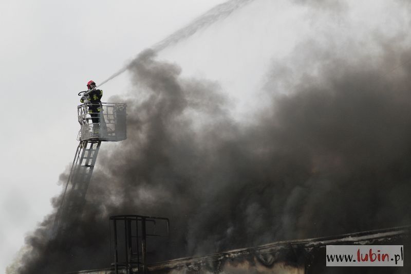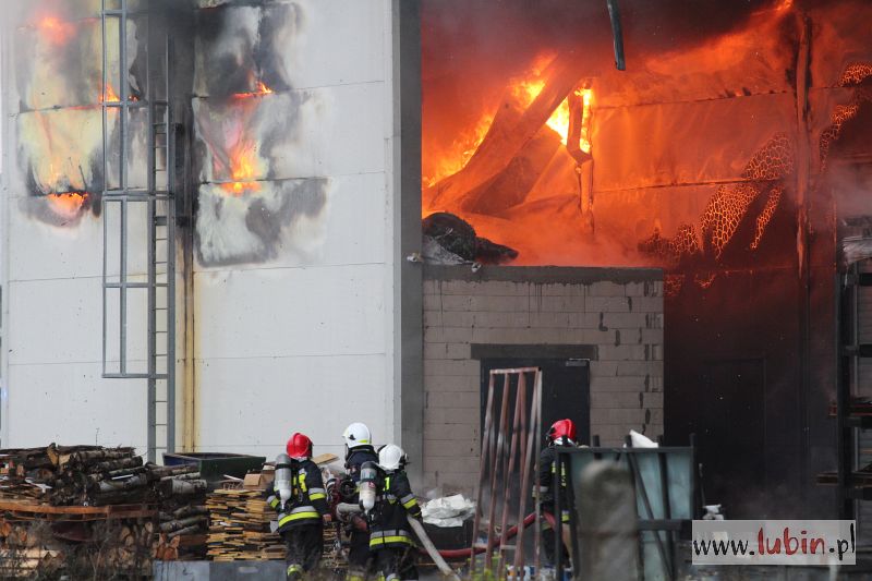 – Na miejscu pierwsi pojawili się strażacy z naszej komendy. Pożar rozwijał się bardzo gwałtownie. Żeby szybko go opanować, musieliśmy wezwać jednostki z okolicznych powiatów, między innymi z Polkowic, Góry, Legnicy i Środy Śląskiej. Palił się magazyn wyrobów gotowych, prefabrykatów do scen, elementów wykonanych z materiałów łatwopalnych. Znajdowały się w nim także farby, lakiery i rozpuszczalniki – wylicza komendant lubińskiej straży pożarnej młodszy brygadier Eryk Górski, dodając, że pożar gasiło w sumie 16 jednostek straży pożarnej, zarówno PSP, jak i OSP.