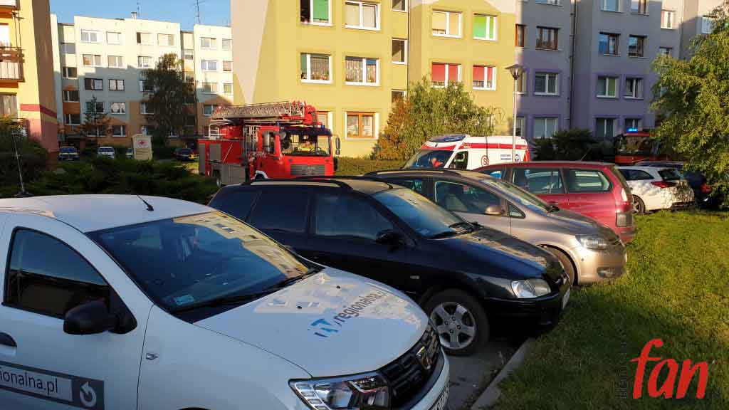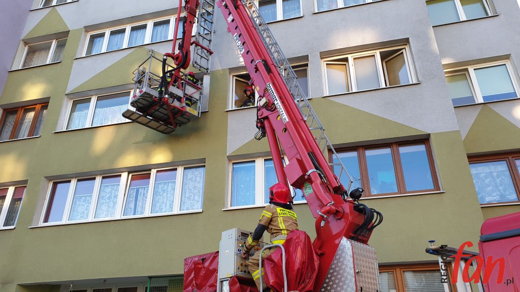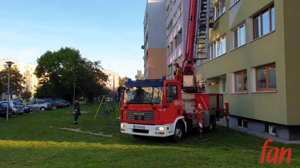 W mieszkaniu na trzecim piętrze znajdowała się starsza kobieta. Wzywała pomocy, drzwi były zamknięte a kontakt z poszkodowaną się urwał. Na pomoc wezwano jaworskie służby za pośrednictwem numeru alarmowego 112. Pierwsi na miejsce przybyli strażacy z JRG – dwa zastępy oraz podnośnik. Jedno z okien było uchylone, więc ratownicy postanowili skorzystać z podnośnika z drabiną.