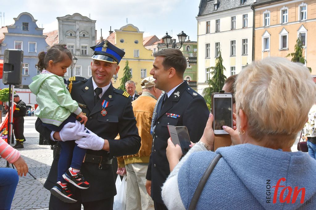 Uroczystość była też okazją do wręczenia odznaczeń i awansów. Brązową odznakę „Zasłużony dla Ochrony Przeciwpożarowej” otrzymał ogniomistrz Wojciech Iwaniszyn i mł. ogniomistrz Paweł Kumik. Złoty medal za zasługi dla pożarnictwa otrzymał Paweł Baczmański i Eugeniusz Fuławka. Medale srebrne otrzymali: Andrzej Staniszewski, Łukasz Błoński, Łukasz Iwódź, Sławomir Rudy, Piotr Boczula i Krystian Rudy. Medale brązowe dostali: Łukasz Starowicz, Dariusz Malinowski, Łukasz Grüner, Marcin Janek, Tomasz Ślizak, Ireneusz Gonera i Ryszard Michałków. Po części uroczystej mieszkańcy mogli podziwiać wystawę sprzętu i wozów. Najmłodszych najbardziej interesowały zaprzęgi wozów zabytkowych oraz nowoczesne wozy bojowe. Strażacy pożegnali się z mieszkańcami głośną paradą na sygnałach.
