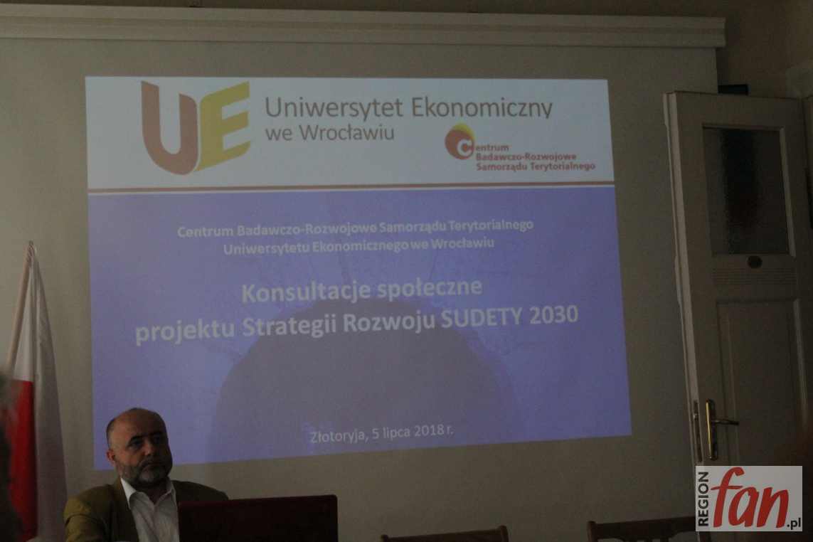 W Starostwie Powiatowym w Złotoryi odbyły się dziś konsultacje społeczne dotyczące strategii rozwoju społeczno-gospodarczego „Sudety 2030”. Projekt ten ma na celu zmniejszenie dysproporcji pomiędzy północną, a południową częścią województwa dolnośląskiego. We wspólnej inicjatywie uczestniczy aż 106 samorządów z podregionów wałbrzyskiego i jeleniogórskiego, w tym również powiat złotoryjski oraz gminy wchodzące w jego skład.