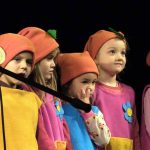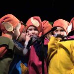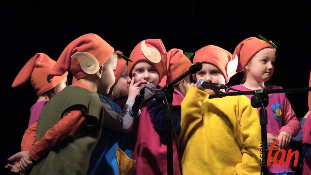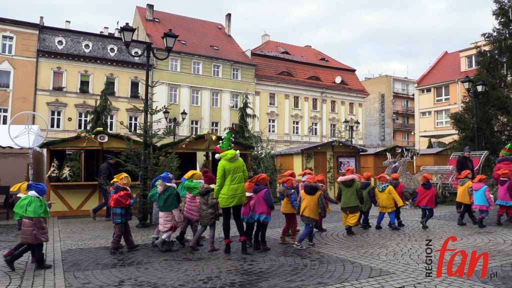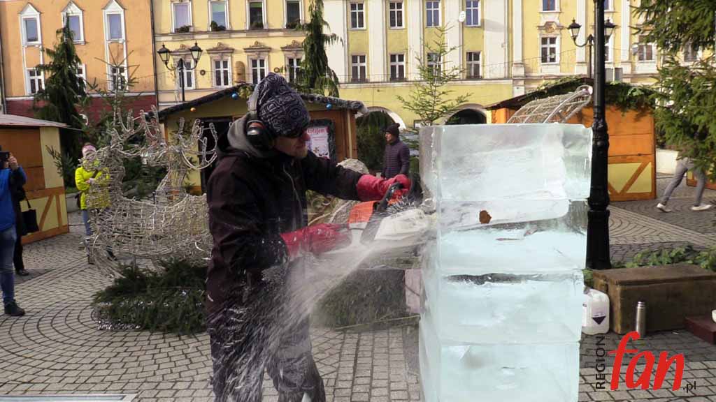 Ze względu na pogodę parada elfów i kolędowanie odbyło się w teatrze. Na scenie zaprezentowały się przedszkolaki z Akademii Krasnoludków i tak rozpoczął się oficjalnie jarmark. Około południa artysta rzeźbiarz zamiast dłuta wziął do ręki piłę spalinową, by wyrzeźbić w lodowych taflach Mikołaja. – Dzieło ma być gotowe za kilka godzin – zapewniał autor.