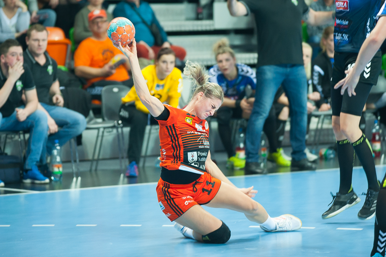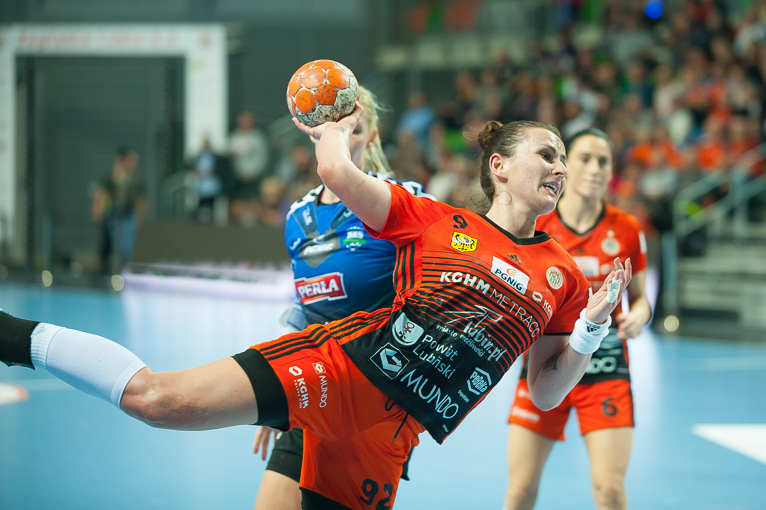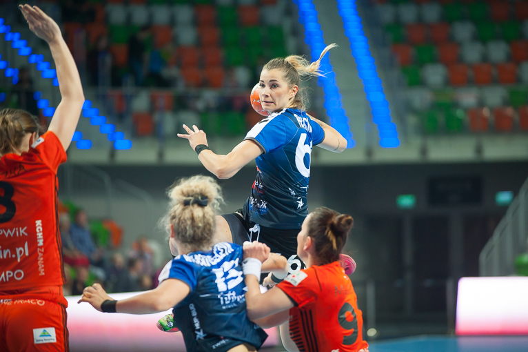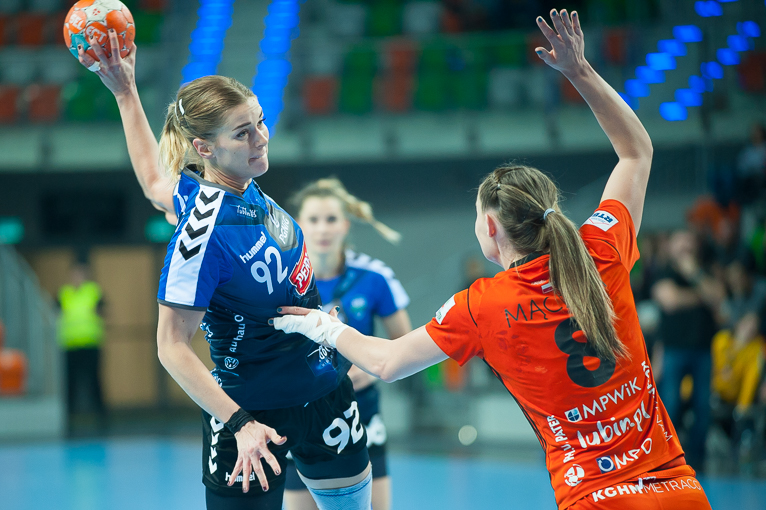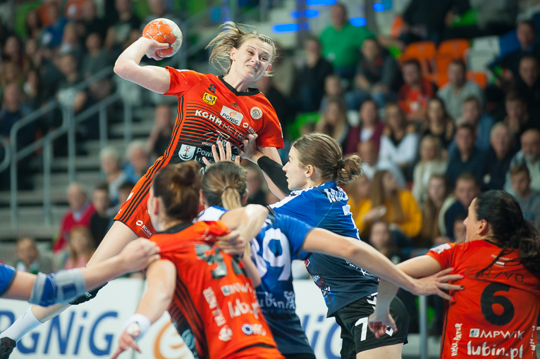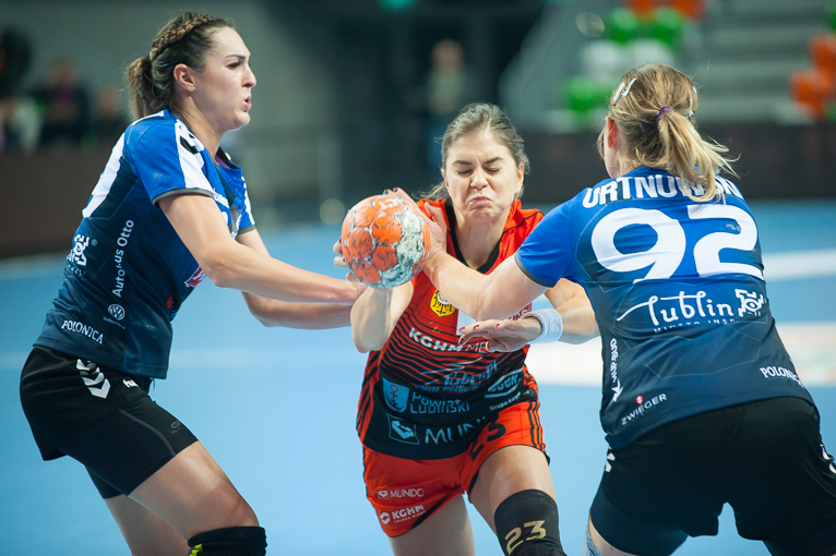 Chwilę po przerwie na parkiecie pojawiła się Paulina Piechnik (powrót po kontuzji), która zmieniła kontuzjowaną Małgorzatę Mączkę. I tym razem lepszy początek zaliczyły przyjezdne i po pięciu minutach na tablicy wyników było 13:15. Miedziowe mają jednak w swoich szeregach Kingę Grzyb. Skrzydłowa Metraco Zagłębia grała fenomenalnie i pewnie rzucała bramki dla swojej drużyny. Przyjezdne były na minimalnym prowadzeniu, lubinianki grały jednak swoje i pomimo niezrozumiałych decyzji sędziowskich na swoją niekorzyść, na kwadrans przed końcem doprowadziły do remisu po 18. Kilka chwil później prowadzenie Zagłębiu dała… Kinga Grzyb! Na tym się nie skończyło. W 50. minucie kolejną bramkę zdobyła Patricia Matieli, która szalała na rozegraniu i było dwoma dla podopiecznych Bożeny Karkut i Renaty Jakubowskiej. Końcówka należała właśnie do Brazylijki, która rzucała bardzo ważne bramki. 23:20 było na pięć minut przed końcem, a chwilę później o czas dla swojej drużyny, przy wyniku 23:21, poprosiła Bożena Karkut. 24 bramkę zdobyła Paulina Piechnik, a chwilę później lublinianki wyrzuciły piłkę w aut! Na 25:21 trafiła Adrianna Górna, chwilę później karnego zmarnowała Kinga Achruk i to Miedziowe triumfowały w tym arcyważnym spotkaniu! W końcówce zawodniczki Metraco Zagłębia dobiły jeszcze rywalki i wygrały pewnie 27:22!
