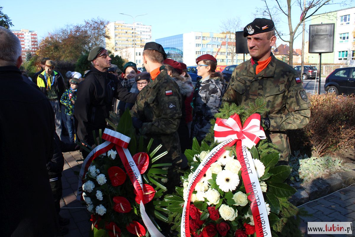 W tym roku program obchodów nieco zmieniono. Nie było biało-czerwonego przemarszu z kościoła pod pomnik marszałka Józefa Piłsudskiego. Wszystko rozpoczęło się złożeniem kwiatów. W uroczystości wzięli udział przedstawiciele samorządów, posłowie, a także mieszkańcy Lubina.