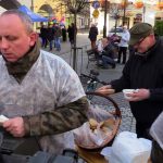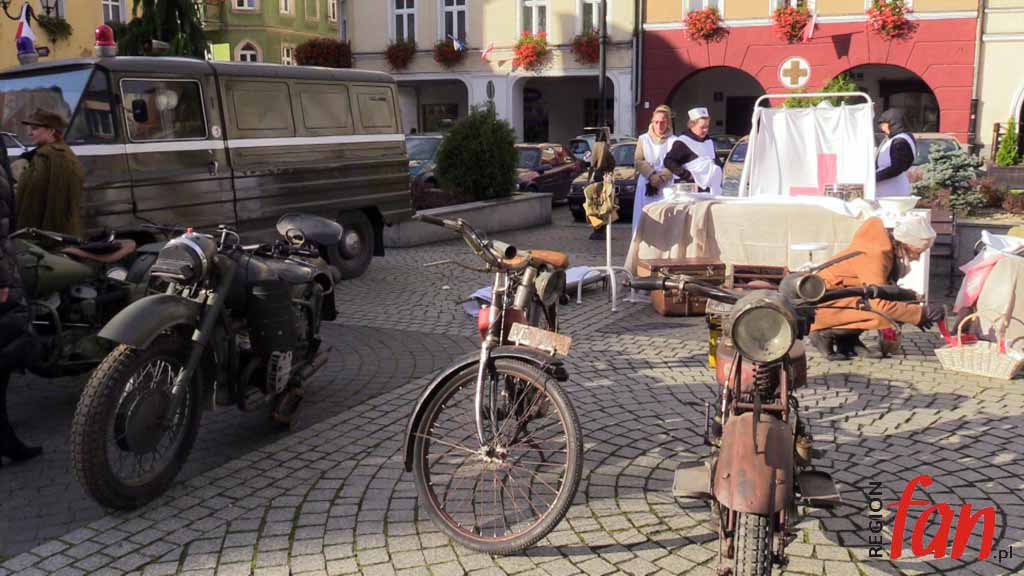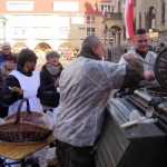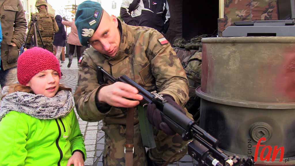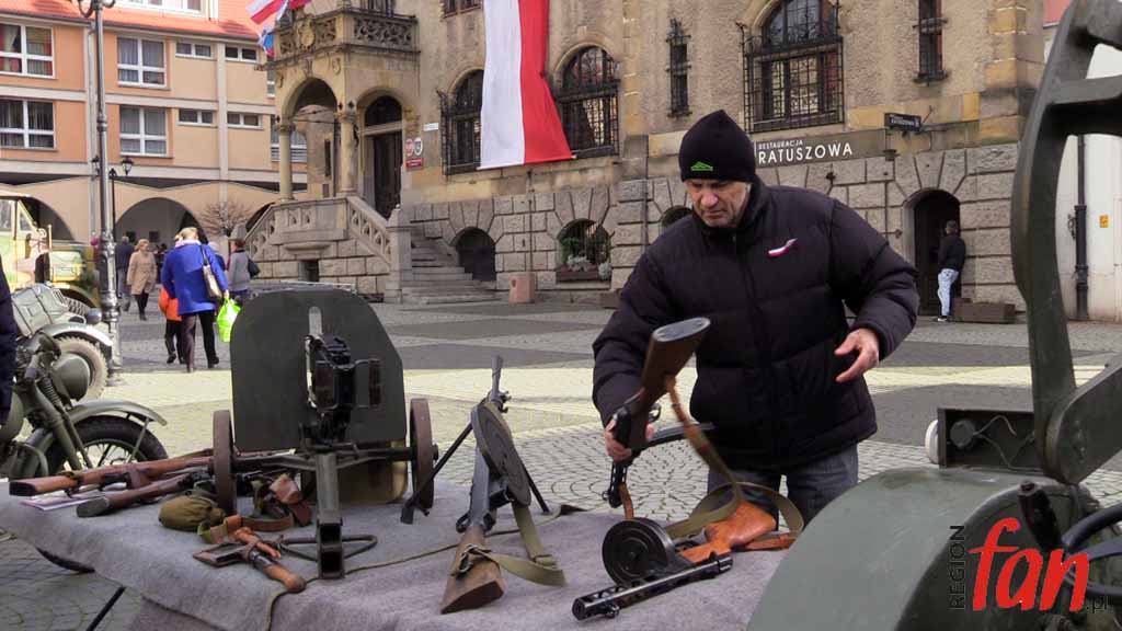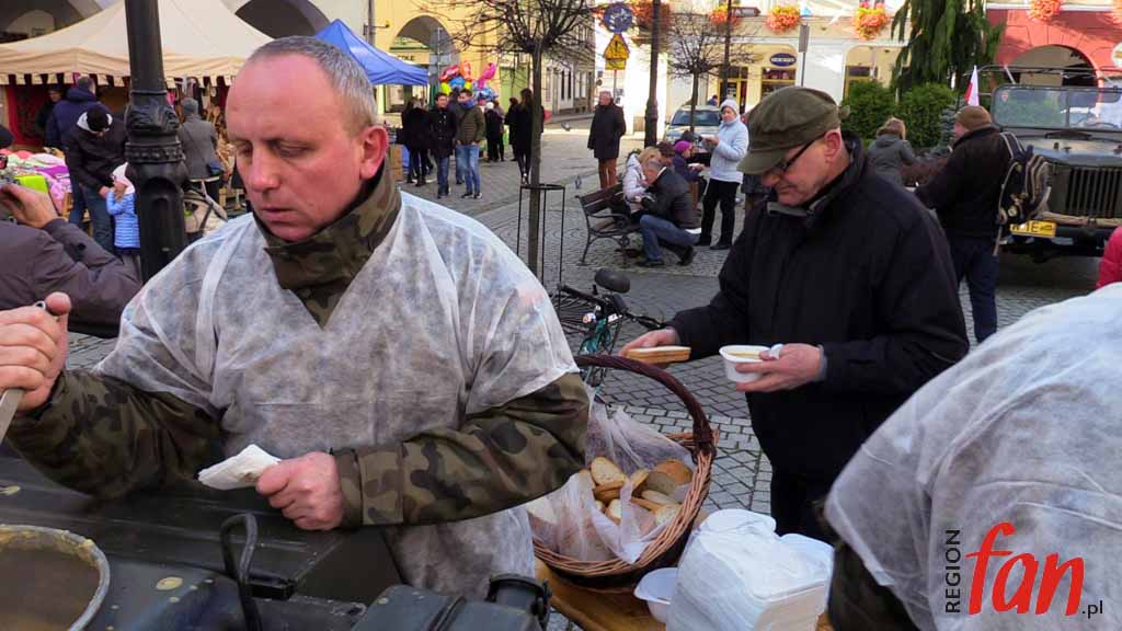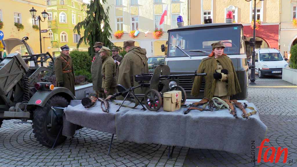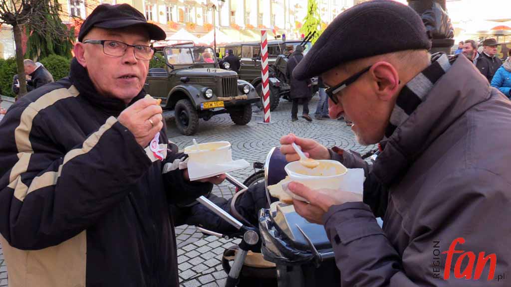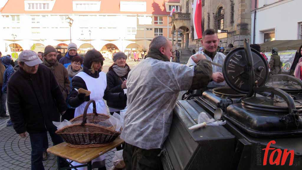 Wokół ratusza od rana rozstawione są stoiska. Jest tu wystawa sprzętu militarnego grupy rekonstrukcyjnej ’39-’45 oraz namiot wrocławskiego 10. Pułku Dowodzenia. Wojskowi zorganizowali elektroniczną strzelnicę, jednak najdłuższe kolejki były do kuchni polowej, z której serwowano wojskową grochówkę. Dużym powodzeniem cieszyły się też świętomarcińskie rogale.