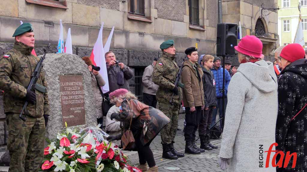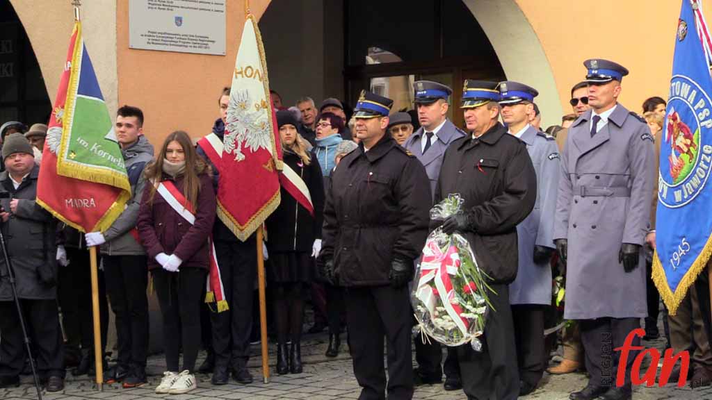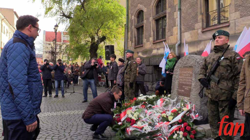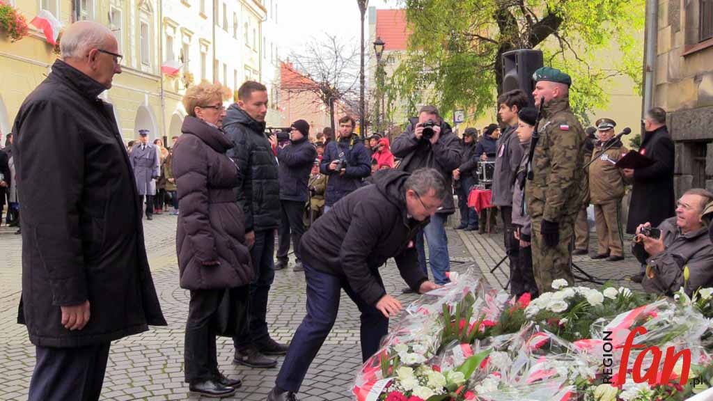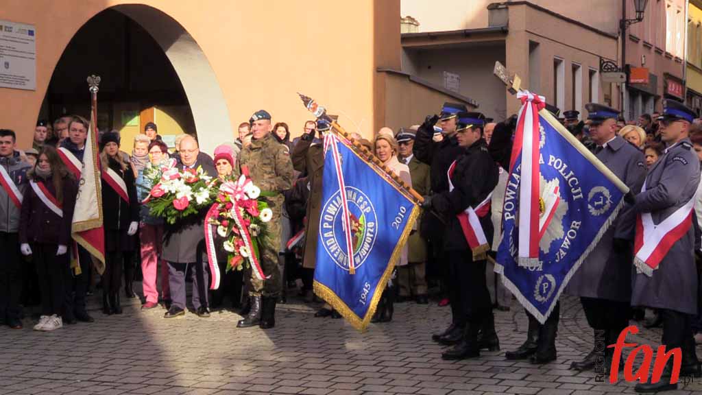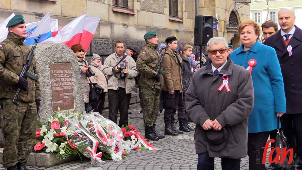 Pod pomnikiem czekało dziś wyjątkowo wiele delegacji i pocztów sztandarowych. Pierwsi kwiaty złożyli posłowie Elżbieta Stępień i Robert Kropiwnicki. W imieniu minister Elżbiety Witek kwiaty złożyła Aneta Kucharczyk z biura jaworskiej posłanki.