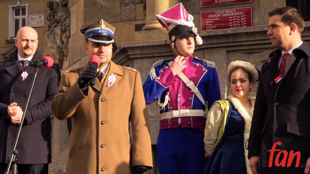 Jaworskie Święto Niepodległości to także dzień patrona miasta, św. Marcina. Oprócz wydarzeń w Rynku wielu mieszkańców wzięło udział w odpustowej mszy w dekanalnym kościele. Wcześniej, o godz. 11 zebranych powitał marszałek Józef Piłsudski, a pod pomnikiem Tysiąclecia Państwa Polskiego pojawiły się kwiaty.