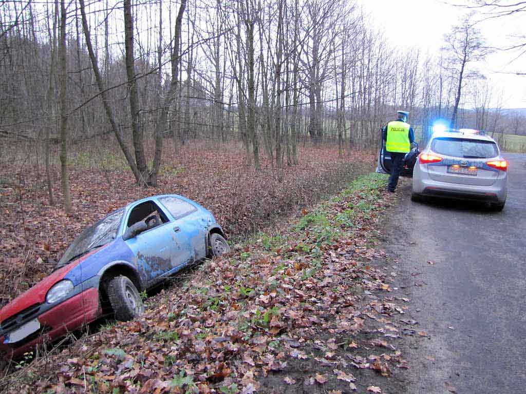 Na drodze między Pogwizdowem a Świnami opel corsa wypadł z drogi. Auto znalazło się w przydrożnym rowie. Samochodem podróżowały dwie osoby. Nikt nie odniósł obrażeń. Okazało się, że kierowca nie posiada uprawnień do kierowania pojazdami. Teraz stanie przed sądem.