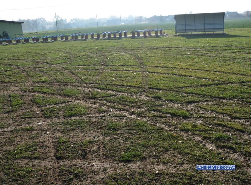 – Mężczyzna wjechał na nie samochodem i uszkodził murawę, kręcąc tzw. „bączki”. Uszkodzenia zamieniły murawę boiska w zryty, śladami opon, plac – relacjonuje Bogdan Kaleta z głogowskiej policji.
