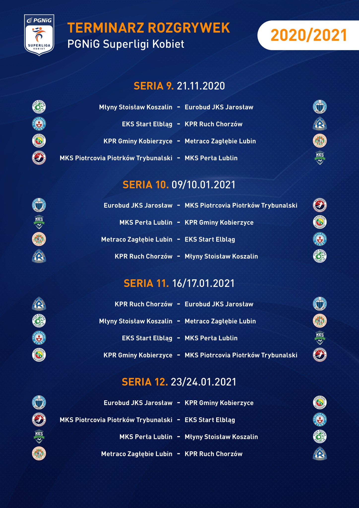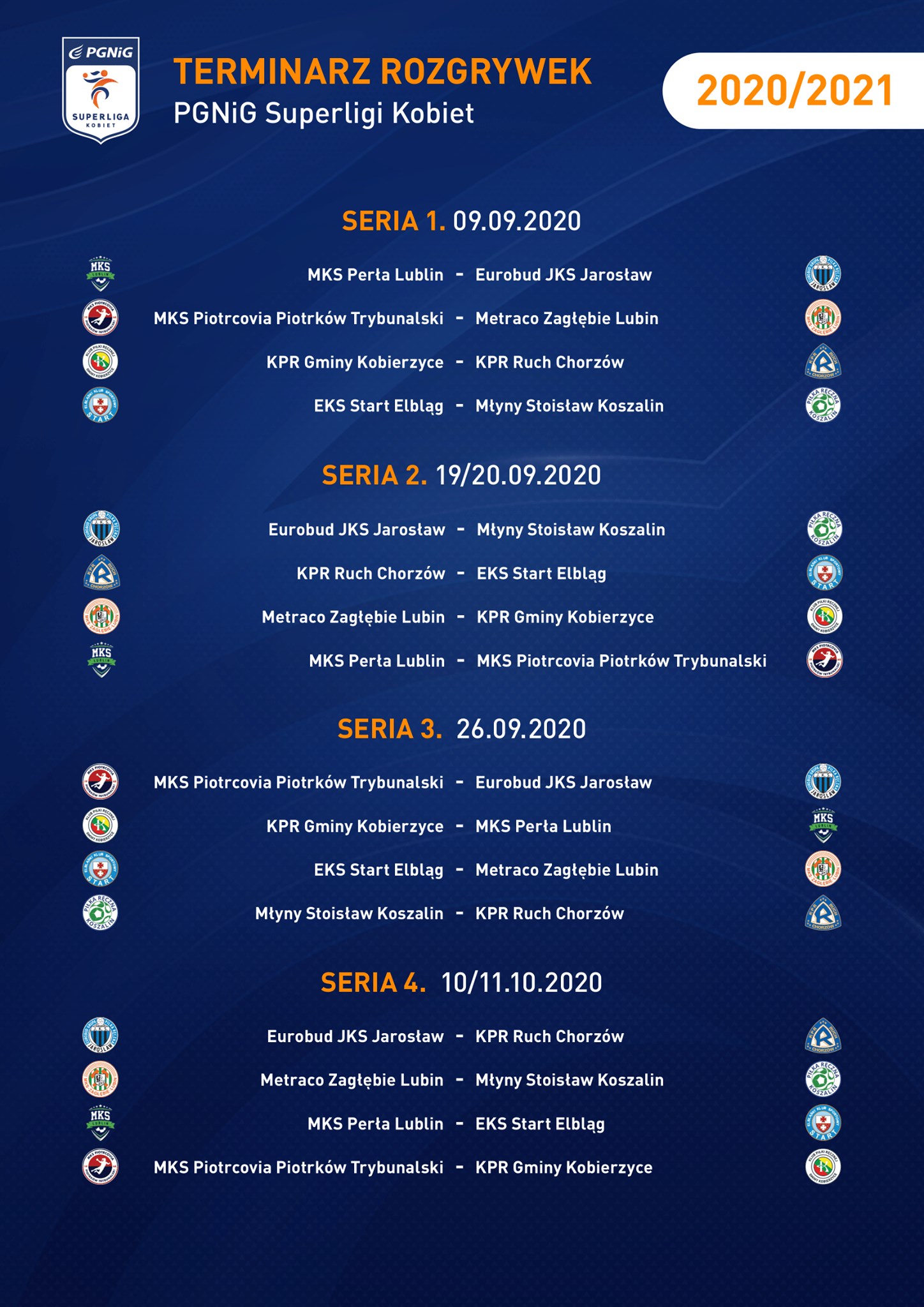 Znamy terminarz PGNiG Superligi Kobiet na sezon 2020/2021. Kobieca najwyższa klasa rozgrywkowa w piłce ręcznej rozpocznie nowy sezon w środę 9 września. Zagłębie Lubin nowe rozgrywki rozpocznie wyjazdowym meczem z Piotrcovią Piotrków Trybunalski. Dokładne terminy i godziny poszczególnych spotkań, transmisji i meczu inauguracyjnego, poznamy na początku sierpnia.