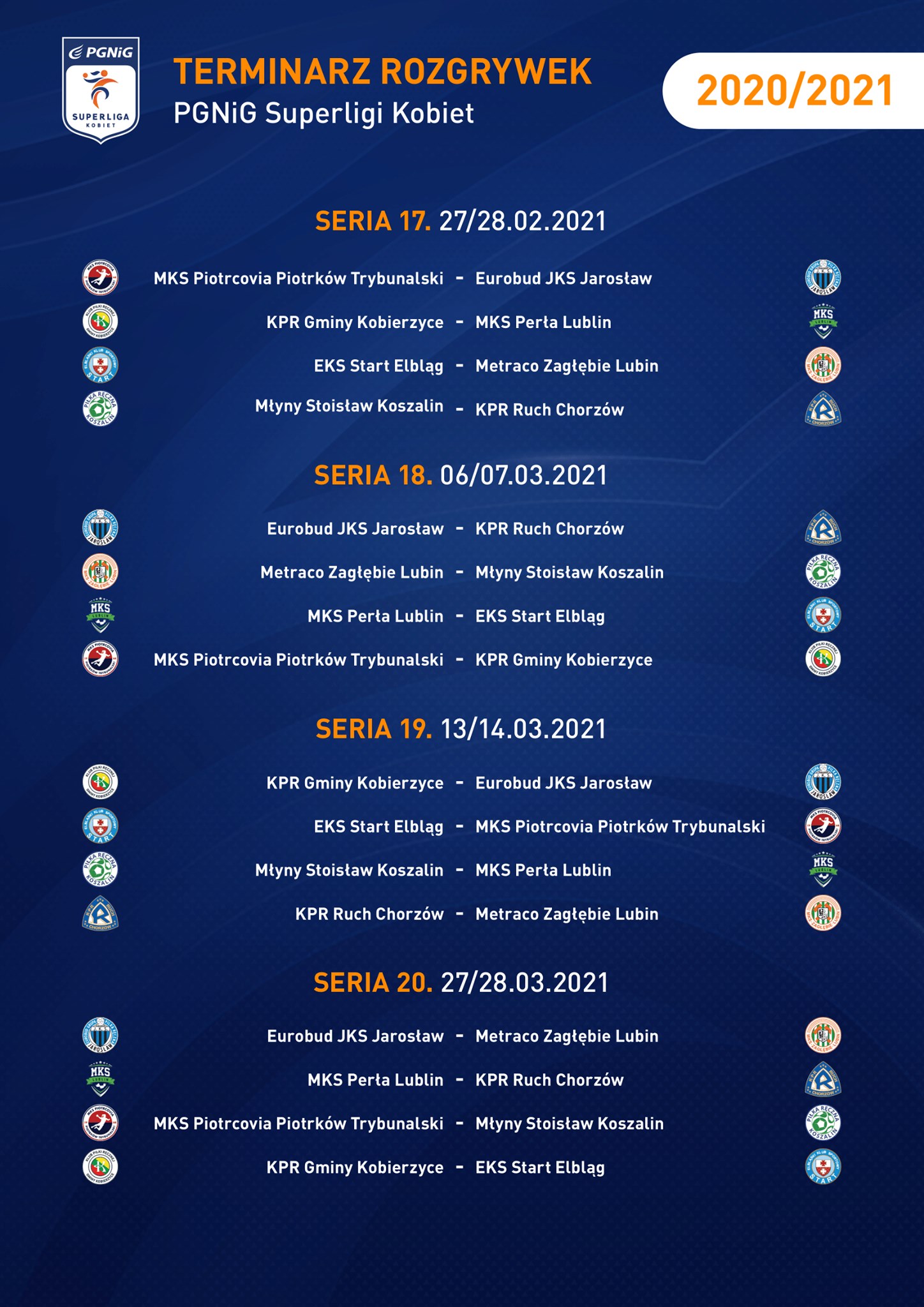 Koniec pierwszej rundy zaplanowano na 8 listopada. Dwa tygodnie później przewidziana jest przerwa reprezentacyjna, podczas której biało-czerwone wystąpią na mistrzostwach Europy w Dani i Norwegii (3-20 grudnia). Do ligowych zmagań zespoły powrócą na początku 2021 roku – 9 stycznia. Trzecia runda zakończy się 10-11 kwietnia, podczas 21. serii rozgrywek. Koniec sezonu przewidziany jest na sobotę 29 maja.