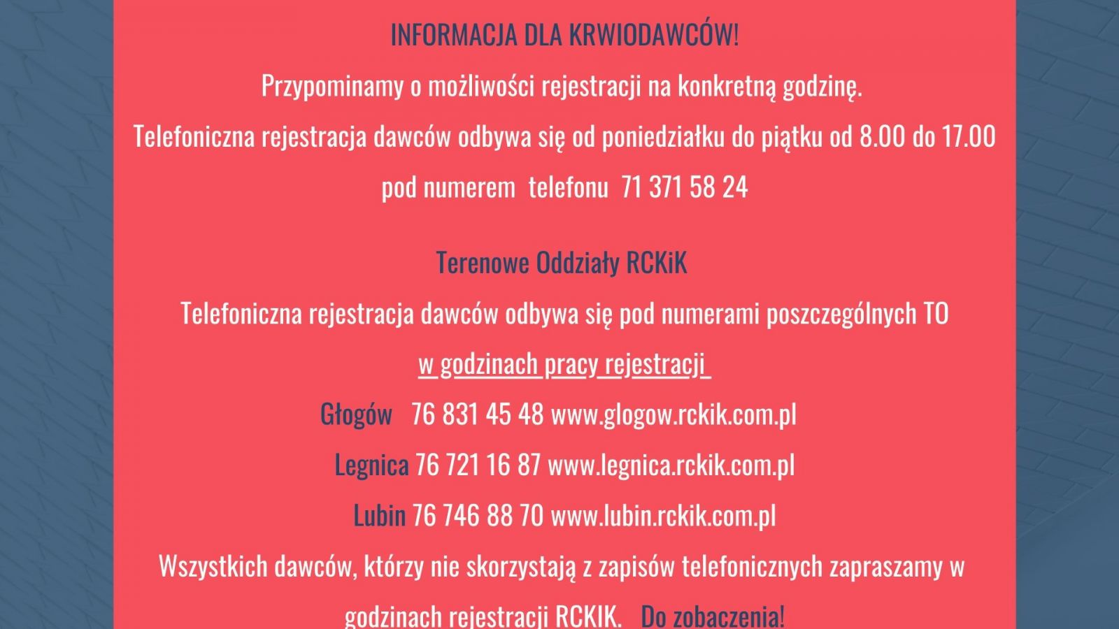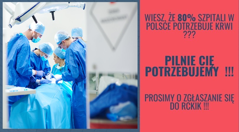 – W związku z wyjątkową sytuacją i wzrastającą liczbą osób hospitalizowanych oraz rosnącym zapotrzebowaniem na krew ze szpitali, zwracamy się do wszystkich Honorowych Dawców Krwi oraz wszystkich zdrowych osób o zgłaszanie się do Centrum Krwiodawstwa w celu oddania krwi – czytamy w dzisiejszym apelu RCKiK we Wrocławiu. Najbardziej pożądane są grupy: O Rh-, O Rh+, A Rh-, A Rh+, B Rh-.