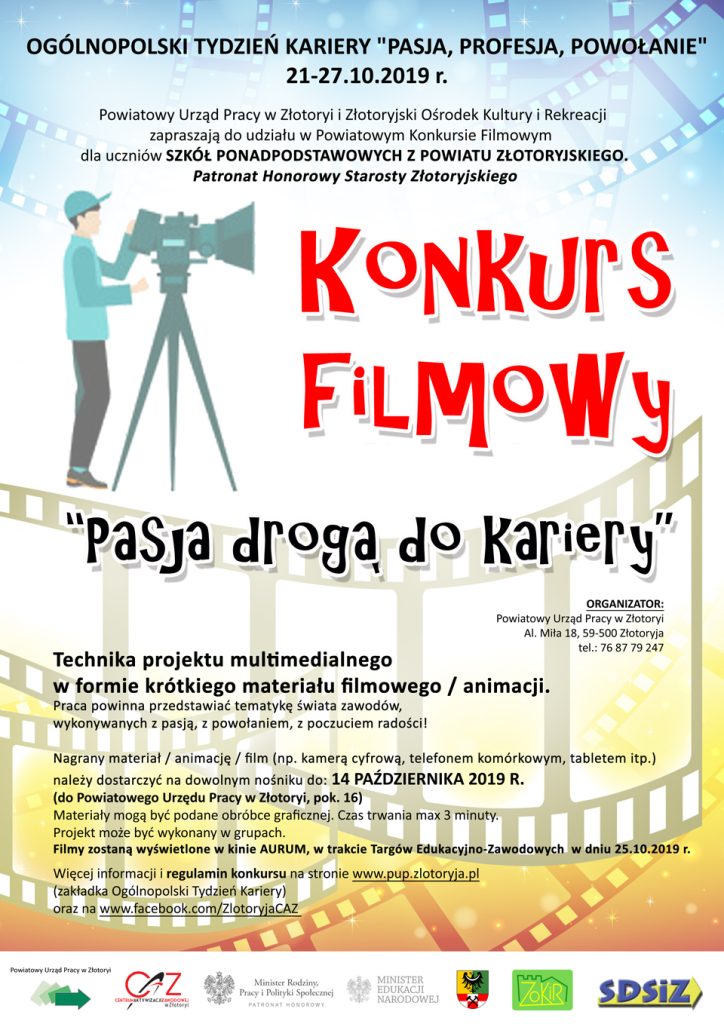 „Pasja, profesja, powołanie” – pod takim hasłem odbędzie się Ogólnopolski Tydzień Kariery organizowany w dniach 21-27 października. Zdecydowanie najważniejszą imprezą w tych dniach będą Targi Edukacyjno-Zawodowe zaplanowane na 25 października. Skierowane są one zarówno do uczniów, osób poszukujących pracy, jak i pracodawców. Zmiana miejsca w porównaniu do lat poprzednich  to przede wszystkim ukłon złotoryjskiego PUP-u w stronę wystawców, których w holu i na balkonach ZOKIR-u ma być aż 29. Warto również wspomnieć o dwóch ciekawych konkursach. Pierwszy to konkurs plastyczny pn. „Praca+Pasja=Sukces”. Przeznaczony jest on dla uczniów klas siódmych i ósmych szkół podstawowych. Drugi zaś to konkurs filmowy „Pasja droga do kariery”, który powstał głównie z myślą o uczniach szkół ponadpodstawowych.