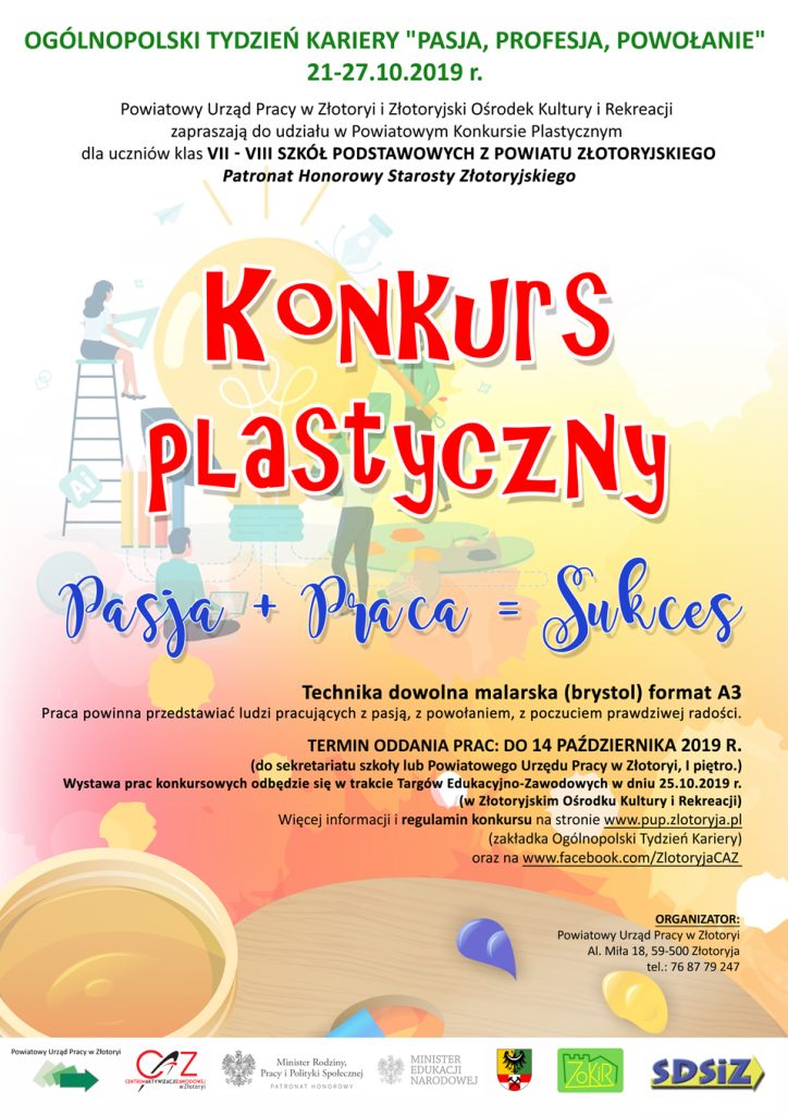 Termin składania prac w konkursie plastycznym mija 14 października 2019 r. Należy je złożyć do sekretariatu szkoły lub do siedziby PUP Złotoryja (al. Miła 18, pok. 16, w godz. 7.00-15.00)