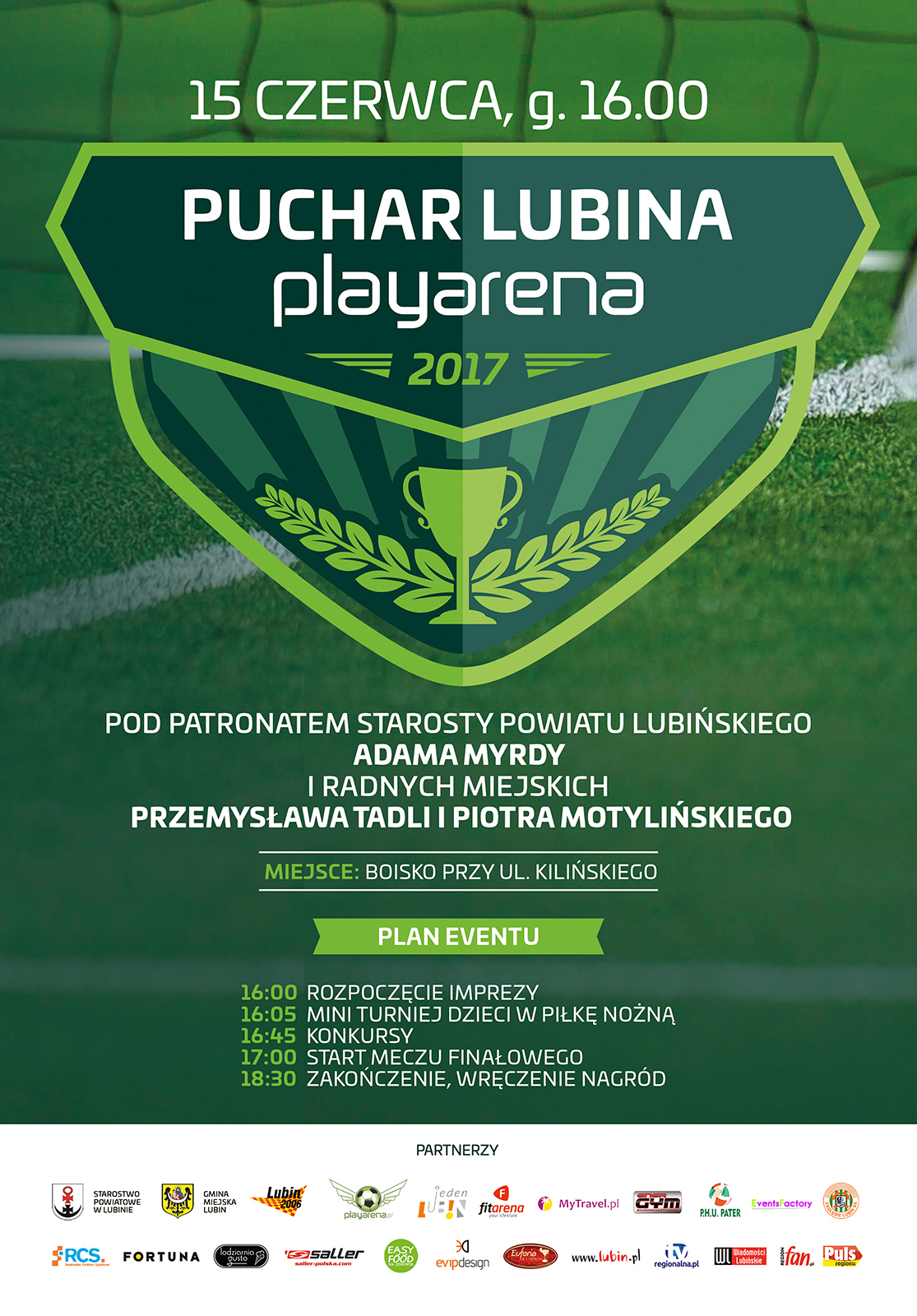 Puchar Lubina to projekt, w który wraz ze mną zaangażowanych jest wiele osób, w tym Piotr Motyliński oraz ambasadorzy Playareny Bartosz Sawicki i Piotr Fortuna. Pomaga nam również Adam Michalik. Patronat nad imprezą objął starosta pan Adam Myrda. Każdy dokłada cegiełkę, aby impreza była jak najbardziej udana.