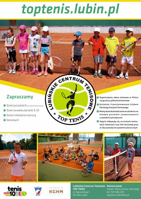 Lubińskie Centrum Tenisowe Top Tenis jest licencjonowanym klubem Polskiego Związku Tenisowego, posiada duże doświadczenie w szkoleniu zawodników na każdym poziomie zaawansowania.