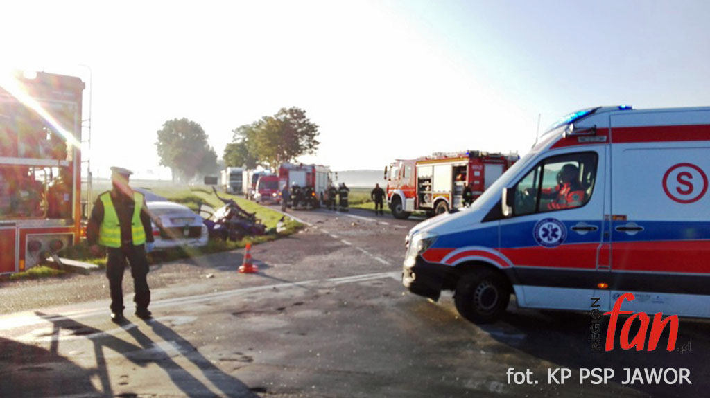 W związku z poważnym stanem jednego z pasażerów opla, konieczna była pomoc Lotniczego Pogotowia Ratunkowego. Niestety, po przetransportowaniu do wrocławskiego szpitala, 21-letni poszkodowany zmarł. Pozostali ranni zostali trafili do Wojewódzkiego Szpitala Specjalistycznego w Legnicy. Na miejscu zdarzenia przez kilka godzin pracowali biegli z zakresu wypadków drogowych. Do godz. 10 były utrudnienia w ruchu na tym skrzyżowaniu.