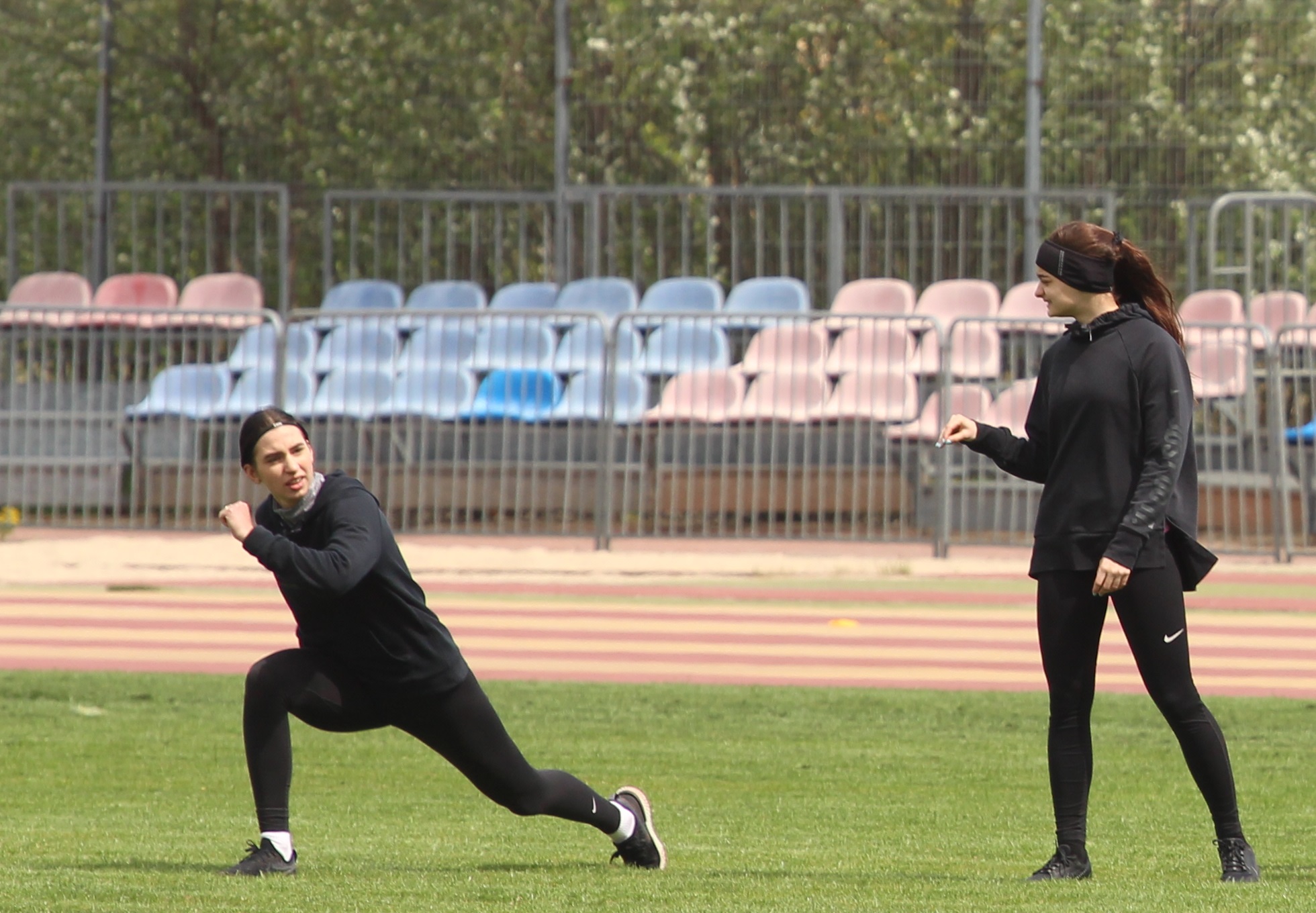Emilia Wawrowska i Nikola Tarnowska, która jest mistrzynią Polski juniorów w biegu na 100 metrów (Fot. Mariusz Babicz)Treningi indywidualne pozwoliły lekkoatletom Sokoła Lubin na podtrzymanie formy, ale powolne „odmrażanie” sportu i poluzowanie restrykcji co do treningów w plenerze sprawia, że zajęcia są bardziej wydajne.