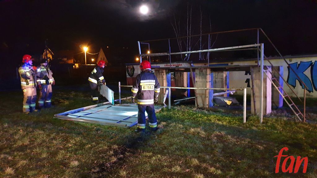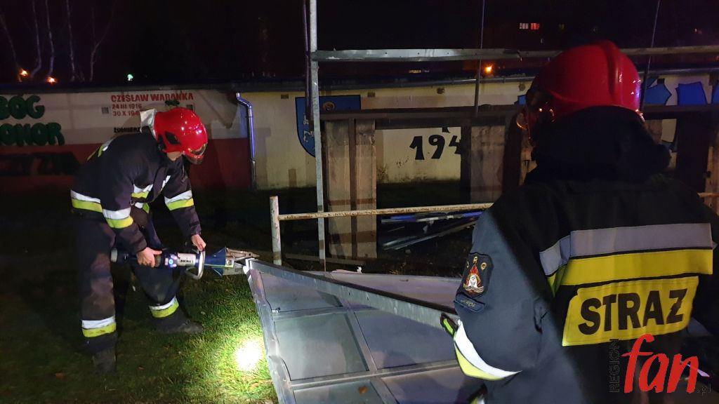 Strażacy przy pomocy sprzętu pneumatycznego wycieli elementy i przenieśli w bezpieczne miejsce. Podczas prac okazało się, że sporych rozmiarów plansza wykonana jest… ze znaków drogowych.