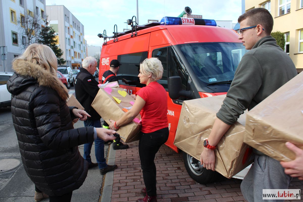 Gdy podjeżdżamy pod Szkołę Podstawową nr 14, która kolejny raz jest lubińskim magazynem Szlachetnej Paczki, przed budynkiem leży wielki stos pakunków. Wolontariusze ładują to do kilku samochodów, w tym wozu strażackiego OSP Tymowa, która po raz drugi pomaga podczas weekendu cudów. Wszystko pojedzie do jednej rodziny.