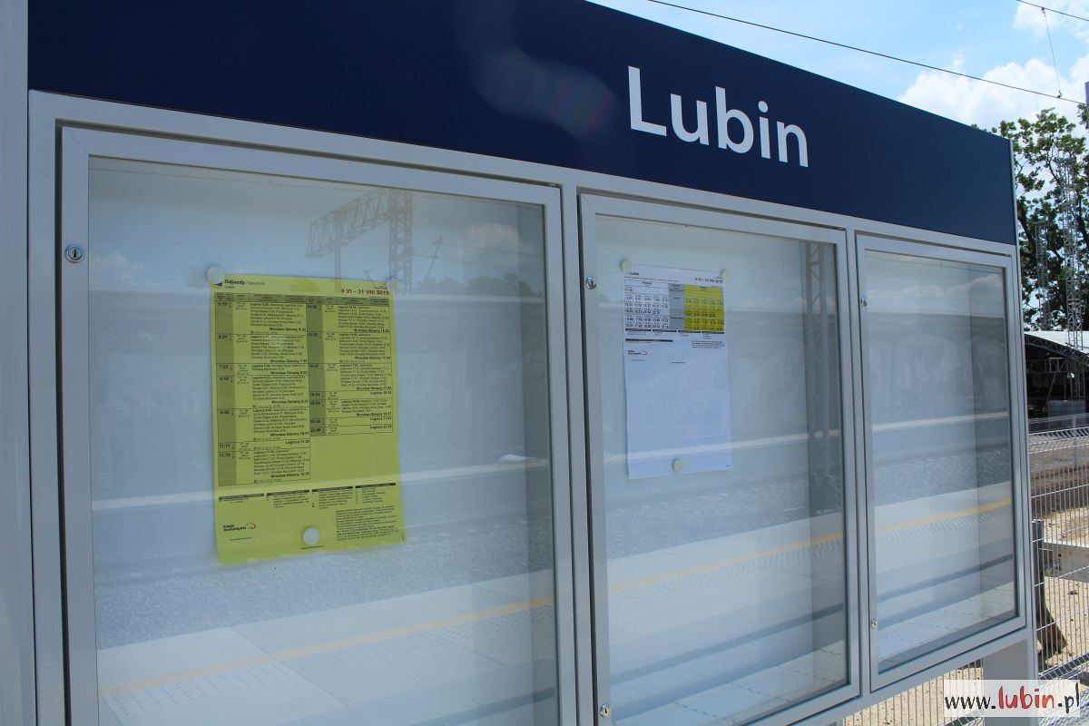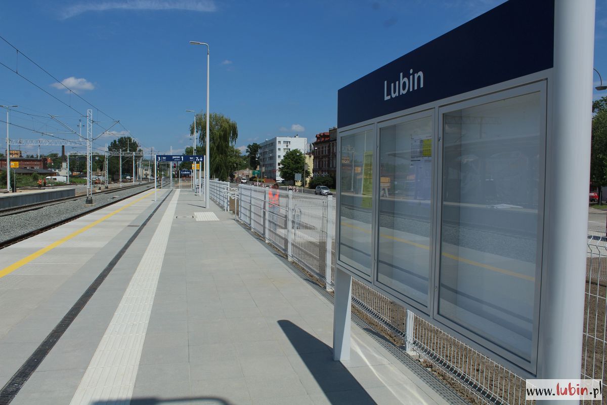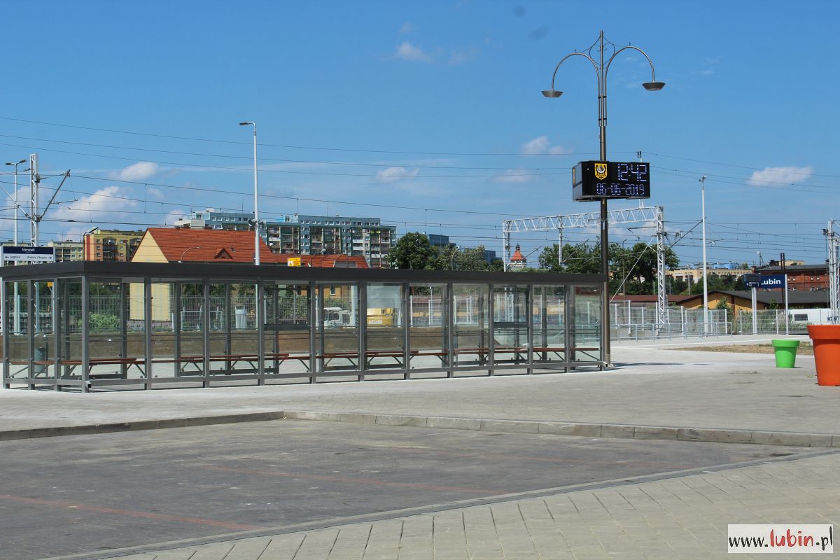 Dla pasażerów powstała wiata – w przyszłości ma tu stanąć centrum przesiadkowe – oraz toaleta. Czas odmierza sporych rozmiarów zegar. Miasto zamontowało też monitoring. Można już na bieżąco śledzić, co się dzieje na stacji poprzez portal Lubin.pl – w zakładce kamery dołożony został widok ze stacji.