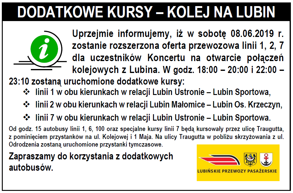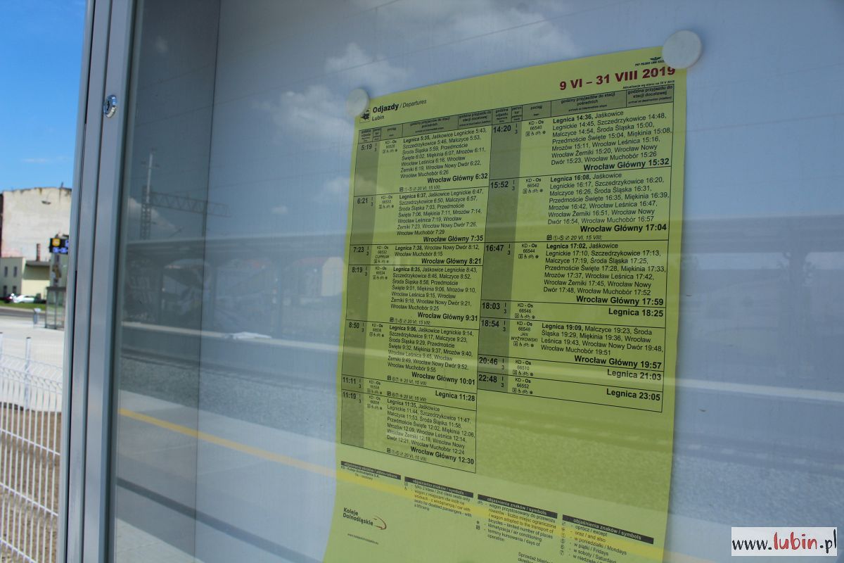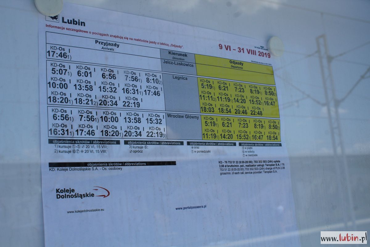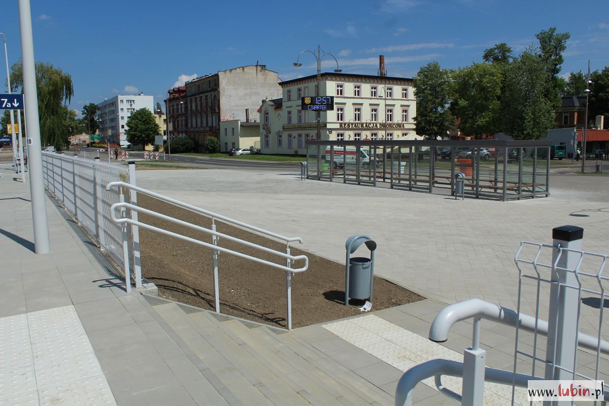 Dla pasażerów powstała wiata – w przyszłości ma tu stanąć centrum przesiadkowe – oraz toaleta. Czas odmierza sporych rozmiarów zegar. Miasto zamontowało też monitoring. Można już na bieżąco śledzić, co się dzieje na stacji poprzez portal Lubin.pl – w zakładce kamery dołożony został widok ze stacji.