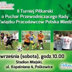 Już po raz drugi Klub Sportowy Polkowice wraz ze Związkiem Pracodawców Polska Miedź jest organizatorem turnieju piłkarskiego o Puchar Przewodniczącego Rady Związku Pracodawców Polska Miedź. W tym roku do rywalizacji zgłosiło się 12 drużyn, które rywalizować będą w trzech grupach. Oprócz turnieju głównego na murawie zaprezentują się drużyny VIP złożone m.in.  z samorządowców, księży i służ mundurowych. Początek rozgrywek o godz.10.00.