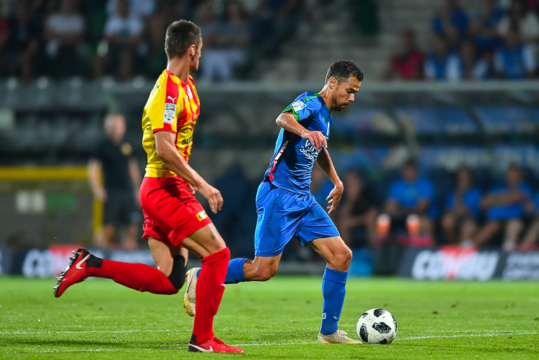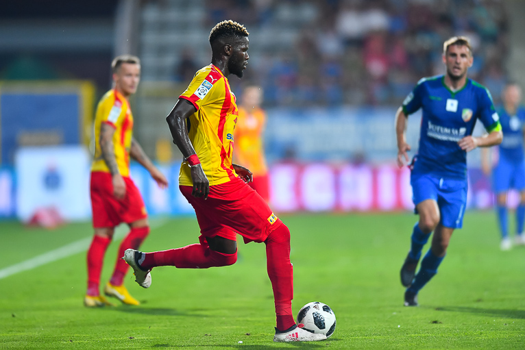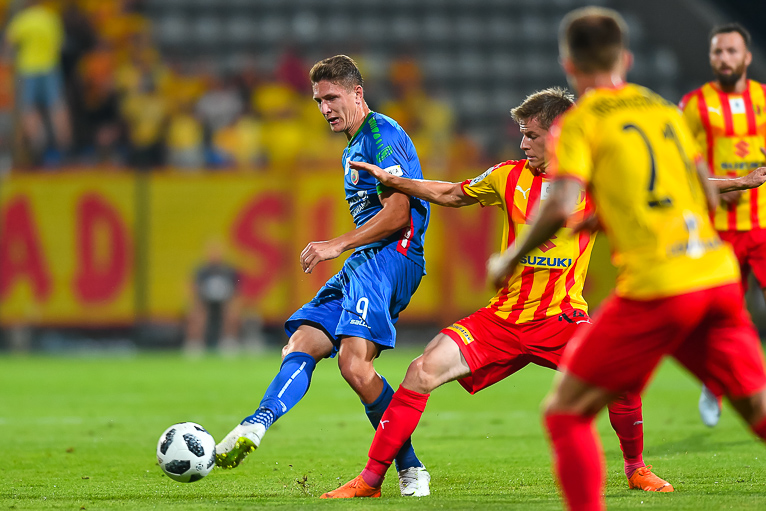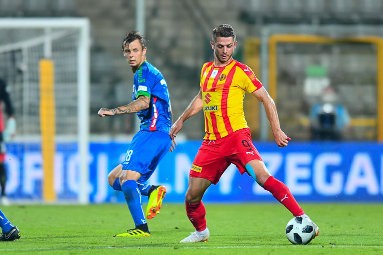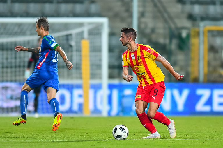 W wyjściowej jedenastce po raz pierwszy w biężących rozgrywkach zabrakło Mateusza Piątkowskiego. Na szpicy zastąpił go Fabian Piasecki, który zbierał pozytywne oceny za poprzednie występy. To jednak nie młody snajper mógł dać swojej drużynie prowadzenie. W 6. minucie oko w oko z Matthiasem Hamrolem stanął… obrońca Paweł Zieliński. Niestety zabrakło mu zimnej krwi, bo zamiast do siatki strzelił niemal wprost w bramkarza. Co ciekawe, ten sam piłkarz miał szansę poprawić się w 30. min. Tym razem uderzył sprzed pola karnego, a golkiper Korony popełnił błąd i wypuścił piłkę z rekawic. Ta minęła jednak słupek i gospodarze mieli tylko rzut rożny. Wcześniej bliski szczęścia był Marquitos, jednak w sytuacji sam na sam z Hamrolem, naciskany przez wracającego defensora kielczan, strzelił zbyt mocno i futbolówka poszybowała nad poprzeczką.