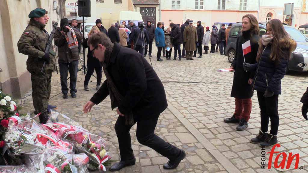 W południe na dziedzińcu zamkowym w Jaworze zebrały się liczne delegacje i poczty sztandarowe. Pod tablicą upamiętniającą zapomnianych przez historię bohaterów złożone zostały wieńce i kwiaty.