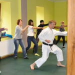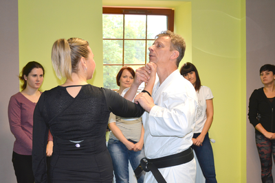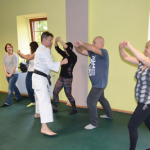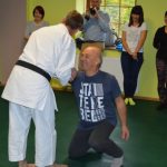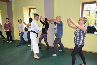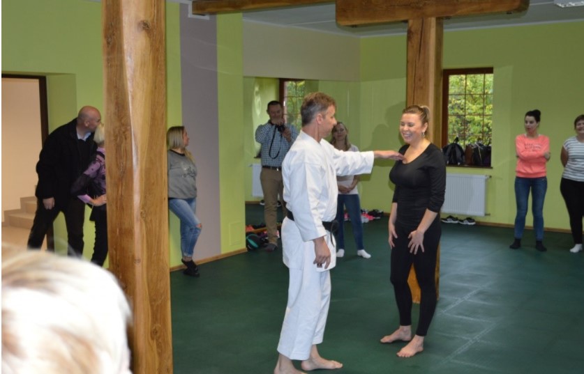 Ćwiczenia praktyczne z zakresu samoobrony przeprowadził mistrz świata w Karate Shotokan podinspektor Henryk Tonderys. Uczestnicy szkolenia mieli okazję poznać metody samoobrony oraz sposoby panowania nad własnymi emocjami w sytuacjach trudnych. Obecnie pracownik socjalny może zawsze zwrócić się o wsparcie policjantów, jednak nie jest w stanie za każdym razem przewidzieć, że w danym miejscu taka pomoc będzie mu potrzebna. W związku z tym, że z agresją ze strony petentów pracownik może spotkać się w różnych miejscach, zajęcia praktyczne miały na celu pokazanie i przećwiczenie kilku elementów samoobrony niezbędnych w sytuacji ataku bądź gróźb z ich strony.