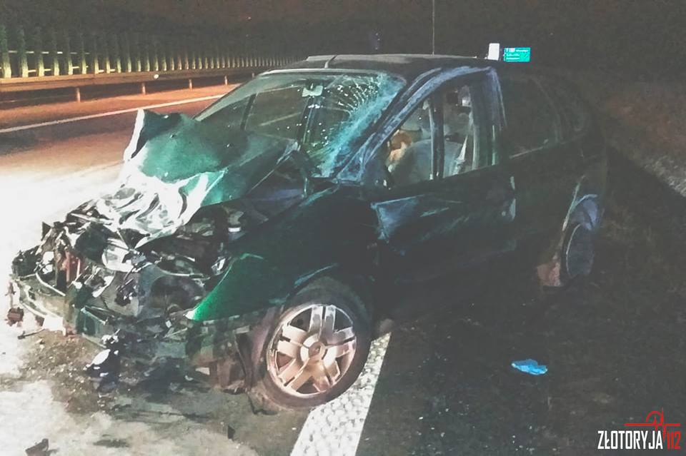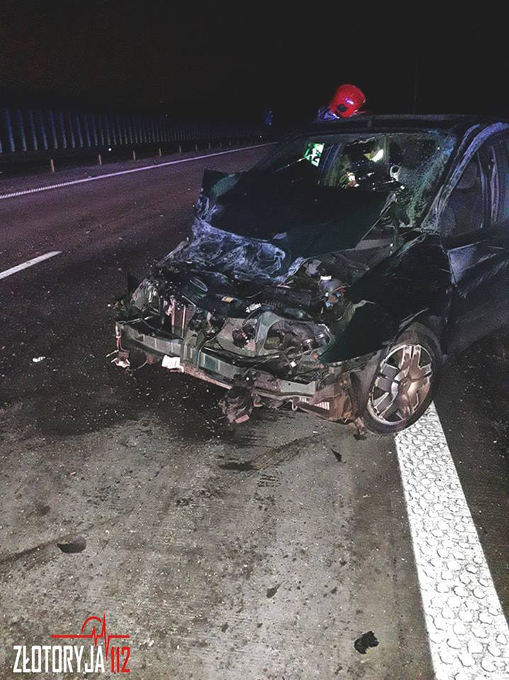 Zdarzenie miało miejsce na odcinku autostrady A4 pomiędzy węzłami Lubiatów i Chojnów. Na ratunek poszkodowanemu natychmiast przybyli strażacy z Jednostki Ratowniczo-Gaśniczej w Złotoryi, ochotnicy z OSP Zagrodno oraz zespół ratownictwa medycznego. Kierujący samodzielnie wydostał się z rozbitego pojazdu, jeszcze przed przybyciem służb ratunkowych. Strażacy zabezpieczyli teren działań oraz ze względów bezpieczeństwa odłączyli akumulator w samochodzie, a także usunęli z jezdni rozlane płyny eksploatacyjne.