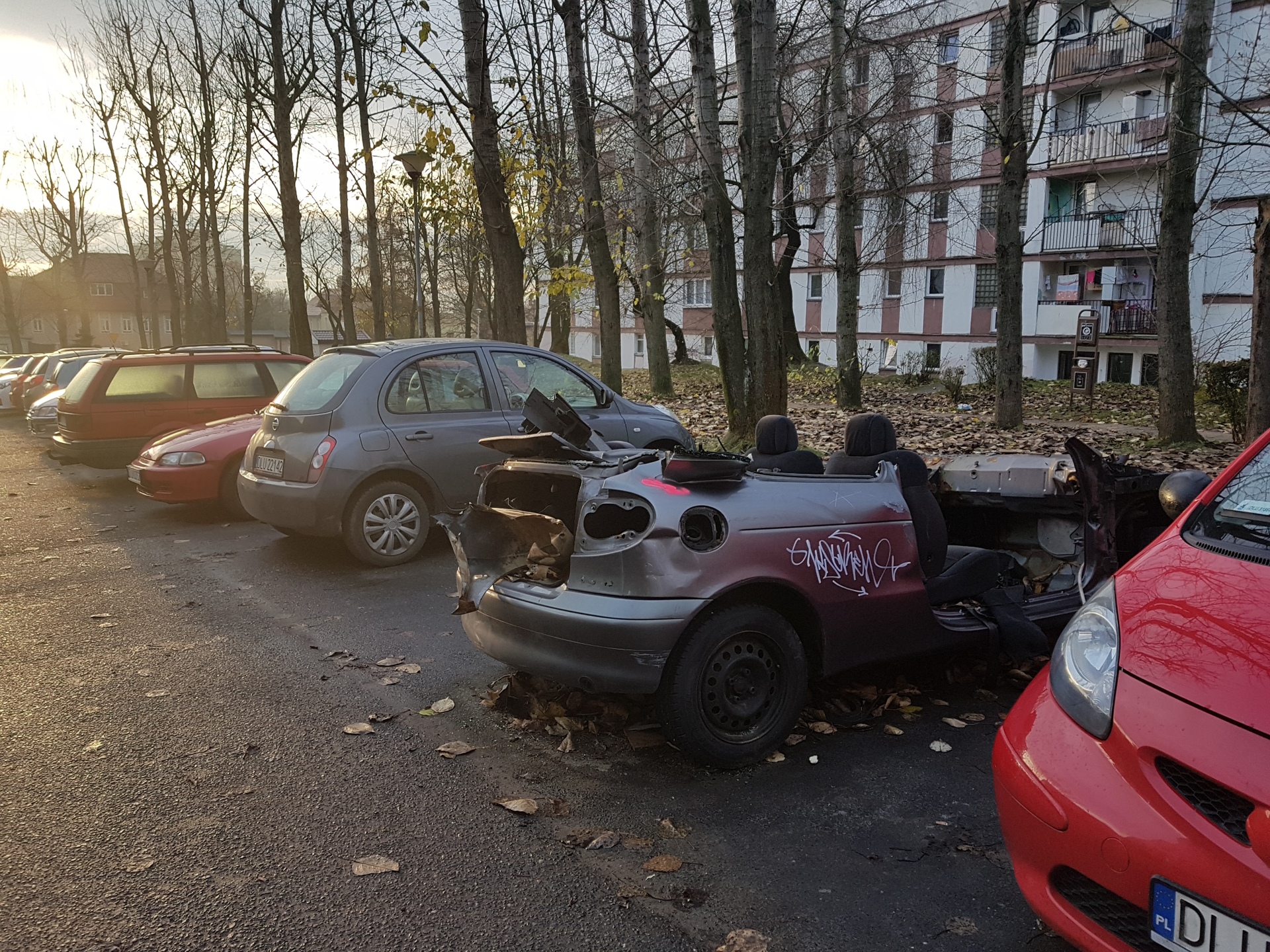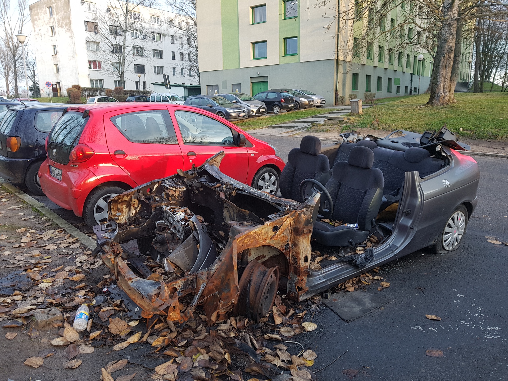 Złodzieje ukradli wszystko, co mogło się przydać lub dało się spieniężyć. Wycięto nawet dach pojazdu. Po leżących wewnątrz puszkach, widać, że odbywały się tam też libacje alkoholowe. – Długo ten wrak będzie jeszcze straszył? – pyta jeden z lubinian, wskazując na samochód zaparkowany obok Urzędu Skarbowego w Lubinie.