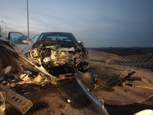 Zdarzenie miało miejsce po godzinie 17 na drodze z Lubina do Obory. Jak relacjonuje jedna z naszych Czytelniczek, kierowca mercedesa uderzył w barierki w miejscu, gdzie budowana jest droga ekspresowa S3. – Uderzył to mało powiedziane. Cały przód auta jest zmiażdżony. Te barierki właściwie go uratowały, bo gdyby nie one, to spadłby ze skarpy – opowiada kobieta.
