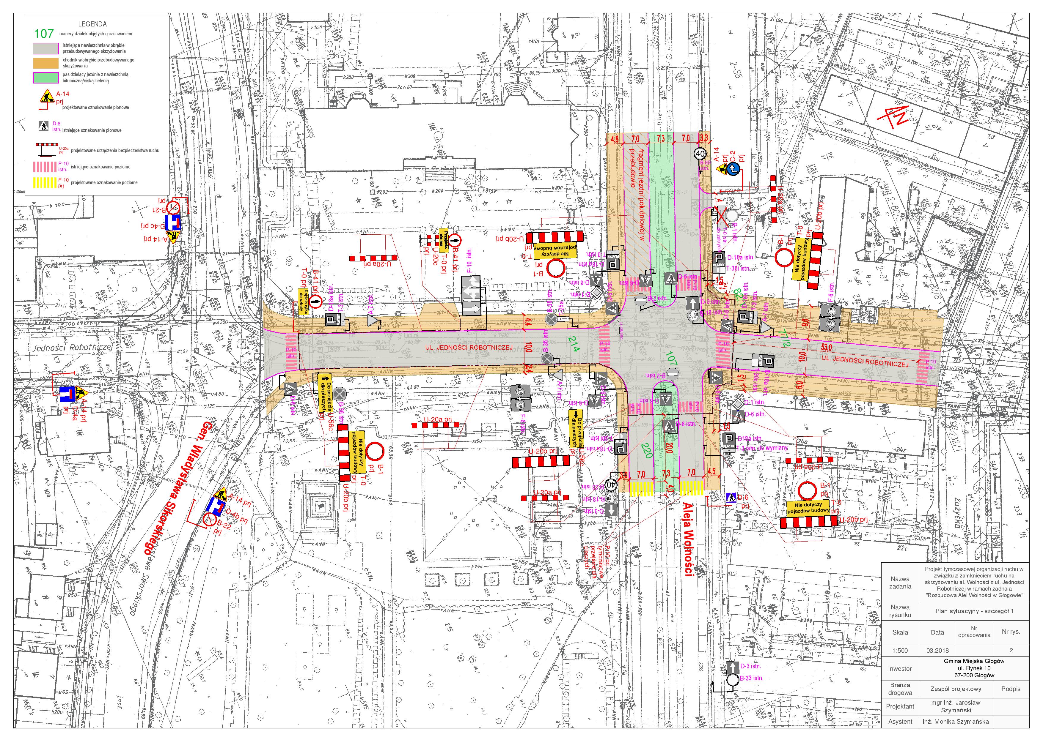 Od strony Placu Jana z Głogowa możliwy będzie wjazd w Aleję Wolności w kierunku ul. Jedności Robotniczej bez możliwości wjazdu na skrzyżowanie z możliwością zawrócenia na wysokości fontanny w Parku Słowiańskim.