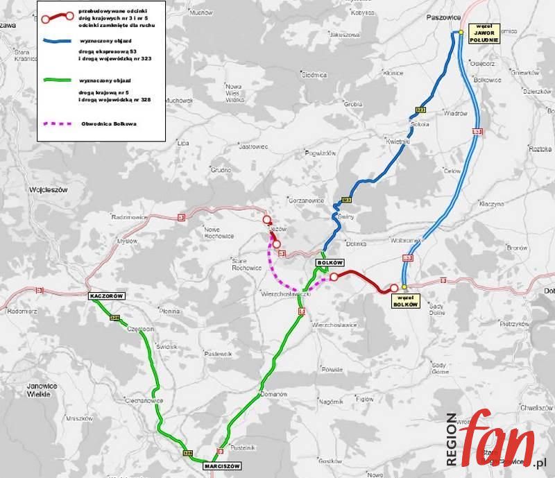 Utrudnienia są wynikiem prac związanych z budową obwodnicy Bolkowa. Roboty wchodzą w kolejny etap i konieczne było zamknięcie ponad półkilometrowego odcinka Drogi Wojewódzkiej nr 323 (dawna DK3) tuż za miastem. Wielu kierujących jedzie „na pamięć”, nie zważa na znaki bądź słuchając głosu nawigacji jadą „po staremu”.