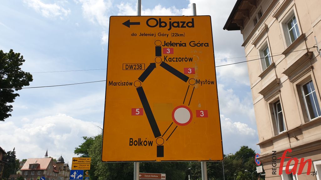 – Mobilki, omijajcie Bolków! – ostrzegają się kierowcy wyposażeni w radia CB. My zalecamy wyposażyć się w cierpliwość i dodatkowe paliwo (objazd przez Marciszów ma ponad 20 km, nie ma na trasie żadnej stacji paliw). Z Jawora do Jeleniej Góry sugerowanym objazdem przez Marciszów zrobiliśmy w sobotnie przedpołudnie ponad 60 km. Czas przejazdu wyniósł 70 minut. Stracony czas i pieniądze z pewnością zrekompensują wszystkim piękne widoki. Objazd i utrudnienia potrwają (jak planują drogowcy) do końca lipca.