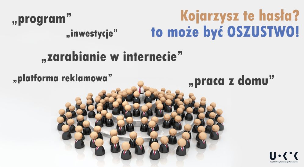 – Uważaj na oferty łatwego i szybkiego zysku w zamian za to, że kupisz „kupony”, „pakiety inwestycyjne”, „świadectwa uczestnictwa”, kryptowalutę itp. Takie obietnice istnieją tylko w reklamach. Bądź czujny, gdy ktoś obiecuje pieniądze za to, że namówisz inne osoby. To może być piramida finansowa. Zawiadamiamy organy ścigania oraz prowadzimy postępowania w sprawach, w których podejrzewamy, że konsumenci mogą tracić pieniądze – mówi Marek Niechciał, prezes UOKiK.