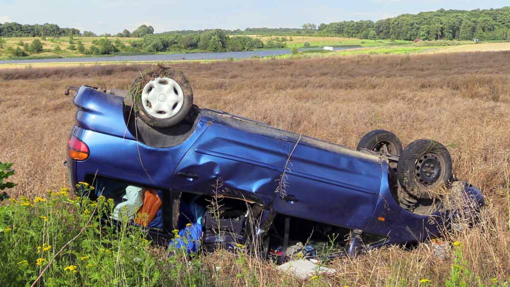 Do zdarzenia doszło kilka minut po godz. 17 na prostym odcinku drogi. Volkswagenem sharanem podróżowały dwie osoby. Na razie nie wiadomo, dlaczego kierowca nagle zjechał na pobocze i wpadł ze sporą prędkością do rowu. Auto przekoziołkowało i zatrzymało się na dachu, na polu.