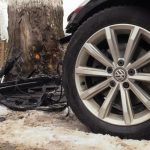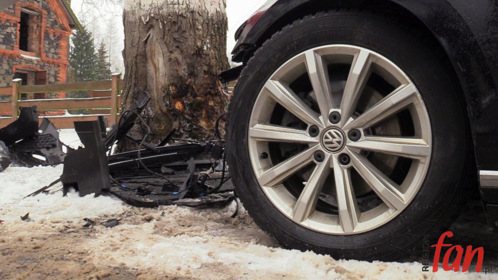 Na łuku drogi w centrum wsi osobowy volkswagen dosłownie wbił się w drzewo. Kierujący stracił panowanie nad pojazdem, bo, jak stwierdził, było bardzo ślisko. Piaskarki pojawiły się w tym miejscu (DW 365) dopiero po zdarzeniu. Istotnie, choć droga wydawała się czarna miejscami zalegało na niej błoto pośniegowe.