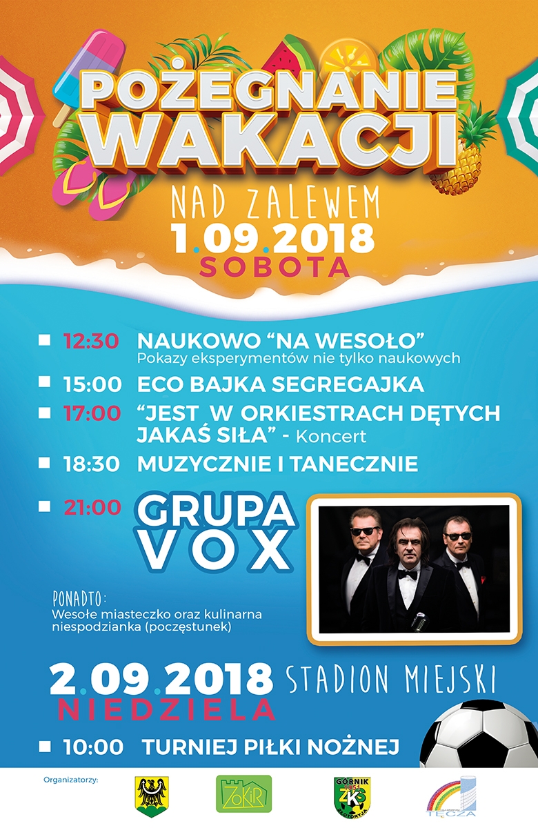 Zespół VOX będzie muzyczną gwiazdą podczas pożegnania wakacji, które w przyszły weekend odbędą się nad złotoryjskim zalewem. Organizatorzy przygotowali sporo atrakcji, nie tylko dla najmłodszych.