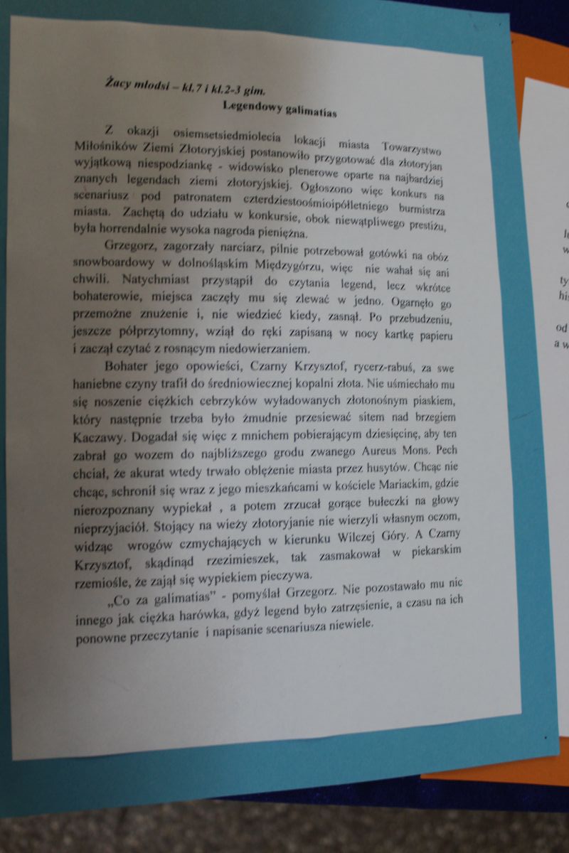 Głównymi organizatorkami Złotego Dyktanda były polonistki Iwona Pierzchała i Renata Fuchs, natomiast autorką tekstów Jolanta Wróblewska, dyrektor Biblioteki Pedagogicznej. W tym roku nawiązywały one do miejscowych legend i zdaniem samych uczestników, nie były bardzo trudne. Wydaje się, że najwięcej kłopotów piszącym mogły przysporzyć nazwy niektórych miejsc związanych ze Złotoryją, a zwłaszcza to, czy rozpocząć je wielką czy też małą literą.